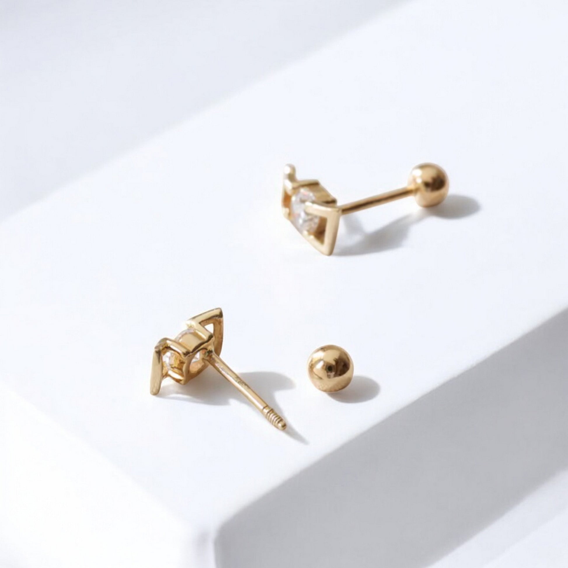 10K Pure Gold Mini Bow Zircon Screw On Earrings