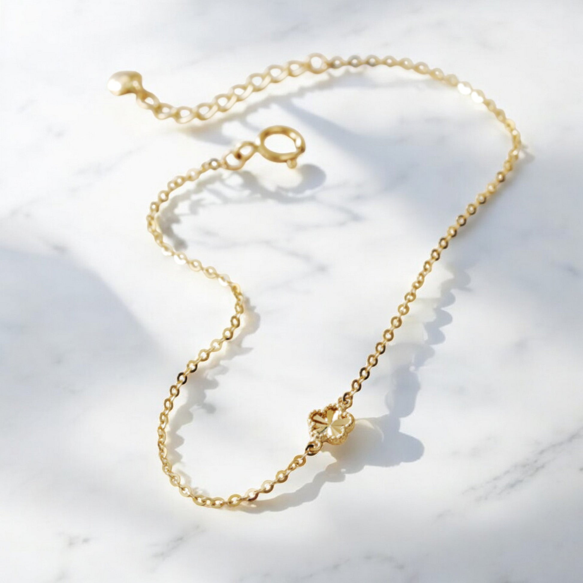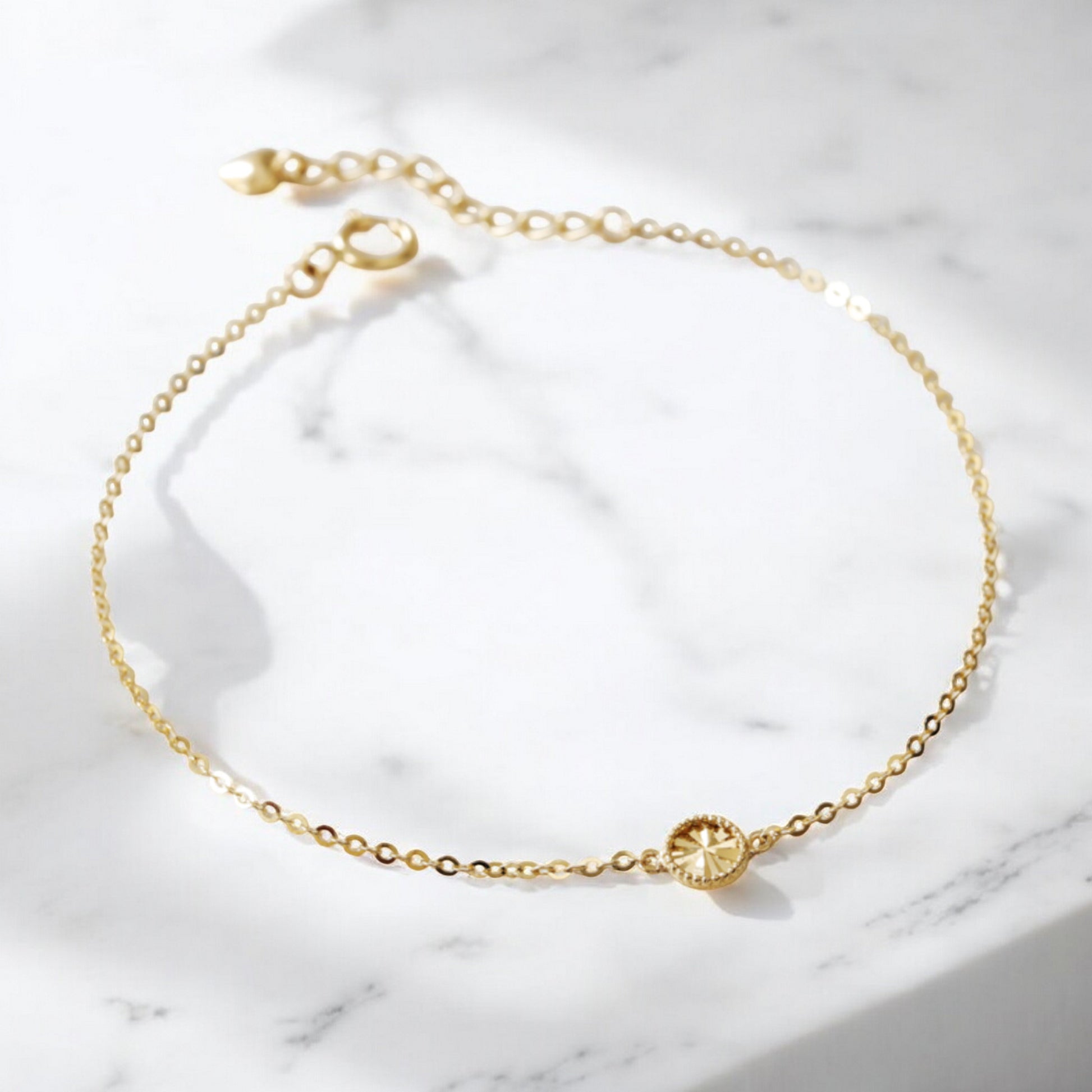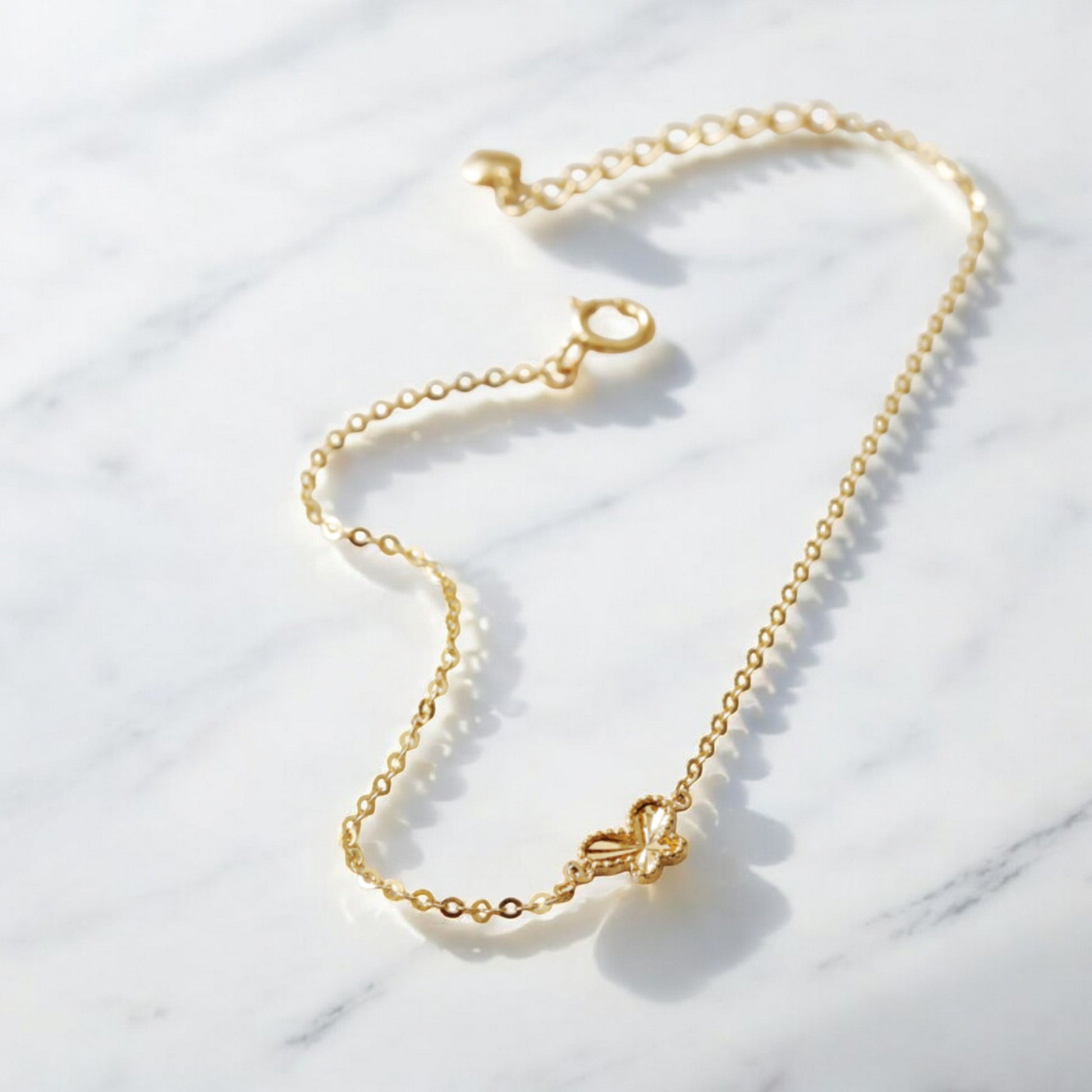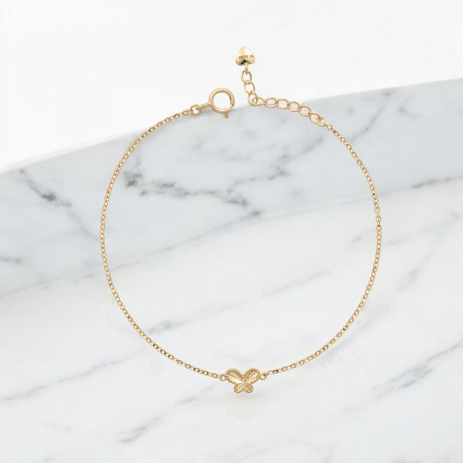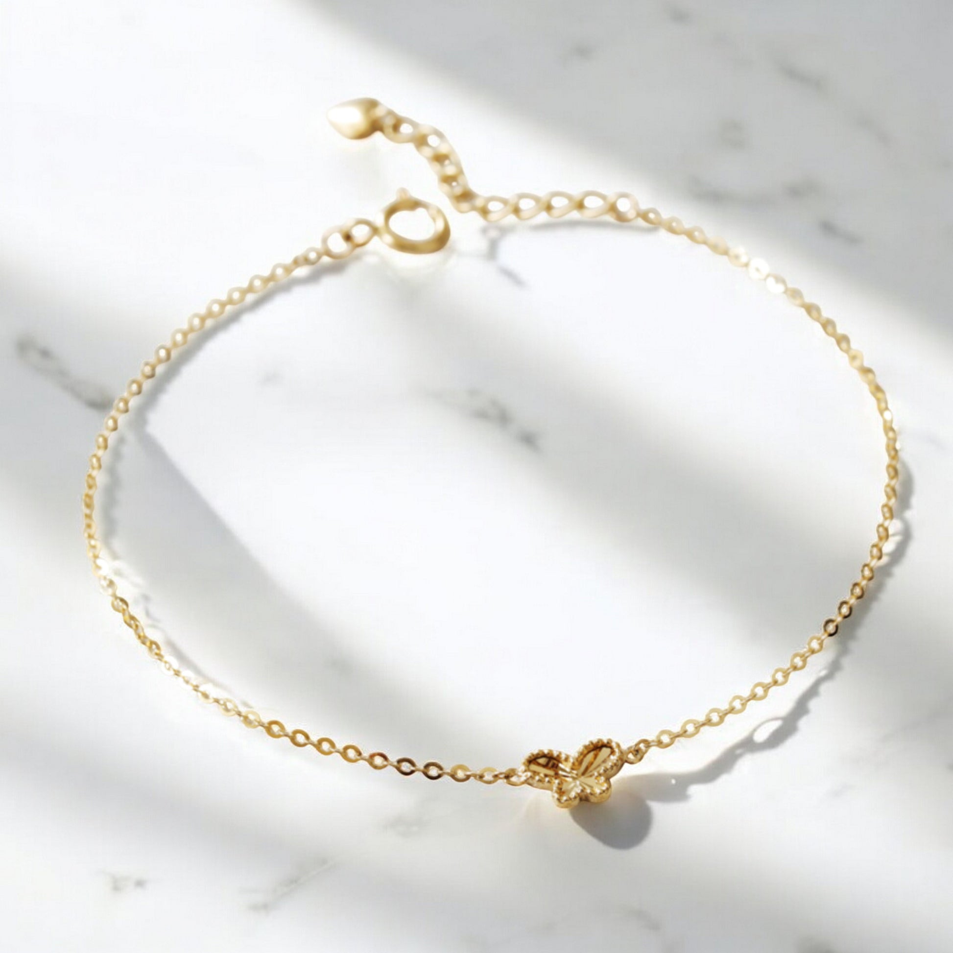 14K Gold Minimal Sparkling Laser-Cut Round Flower and Butterfly Gold Bracelet