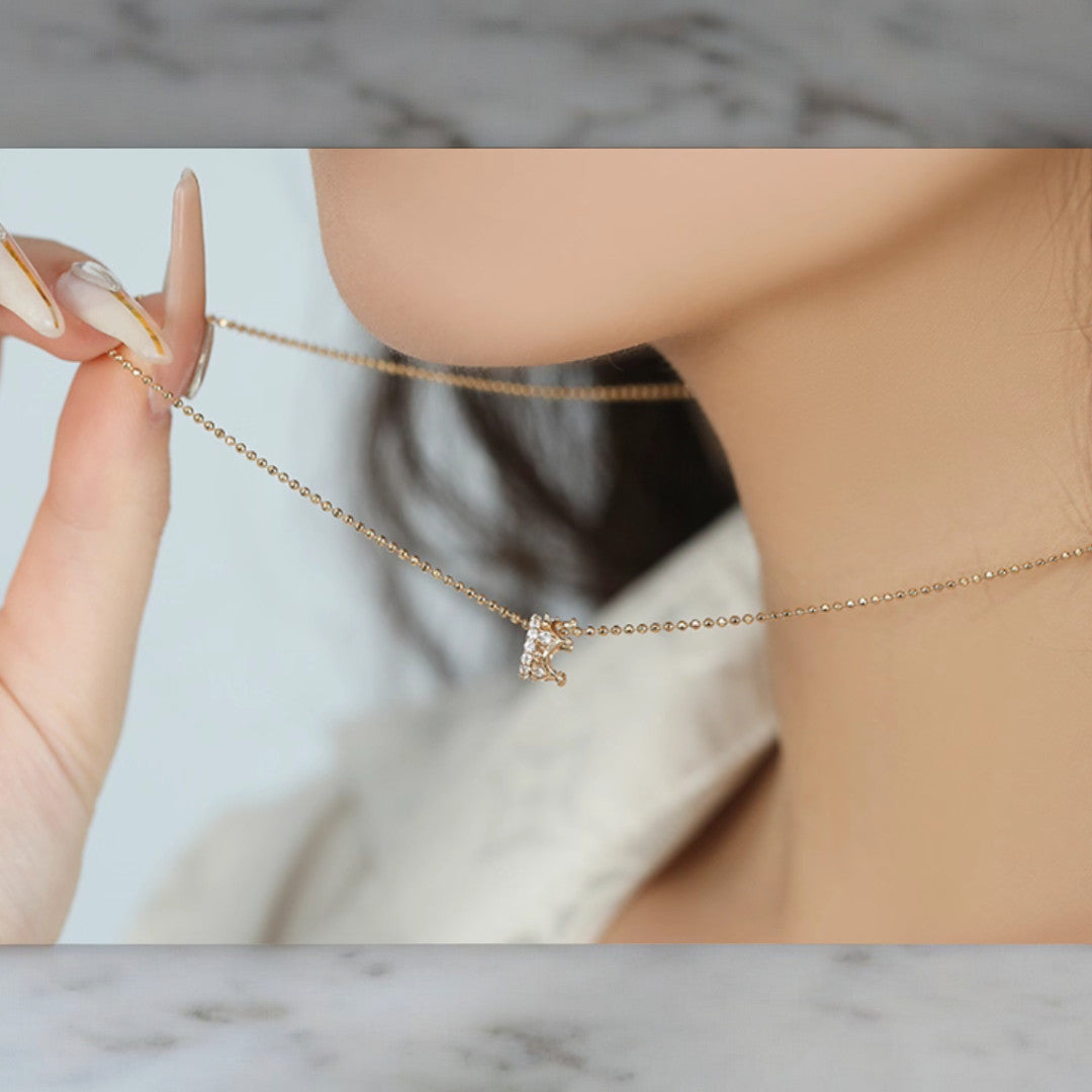 Elevate your jewelry collection with this exquisite 14K real gold crown pendant, featuring brilliant zircon stones that capture light with exceptional sparkle. Crafted from genuine 14K gold, this piece combines timeless elegance with modern sophistication. The crown design symbolizes grace and confidence, making it a versatile statement piece for both everyday wear and special occasions. Perfect for layering or wearing solo, this pendant delivers luxury craftsmanship at an accessible price point. An investment in quality jewelry that transcends trends.