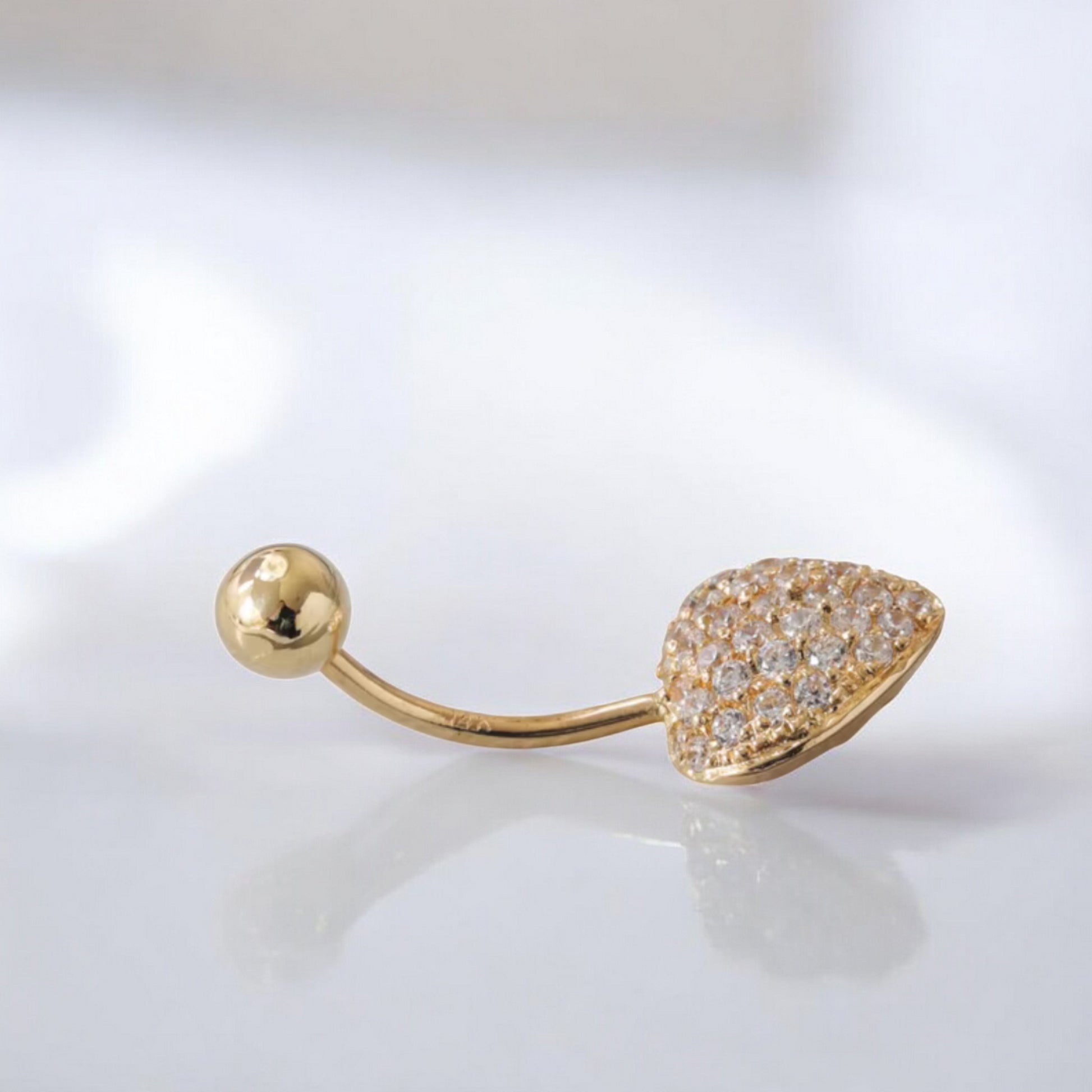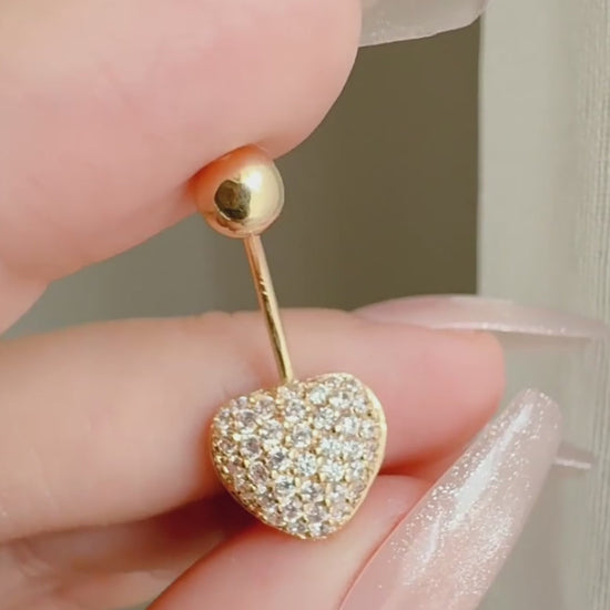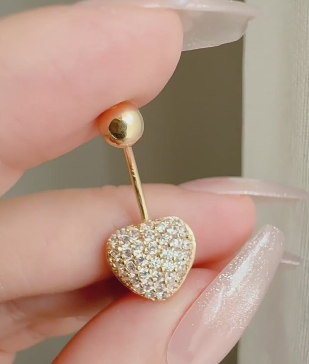14K Real Gold Screw Zircon Heart Belly Button Ring