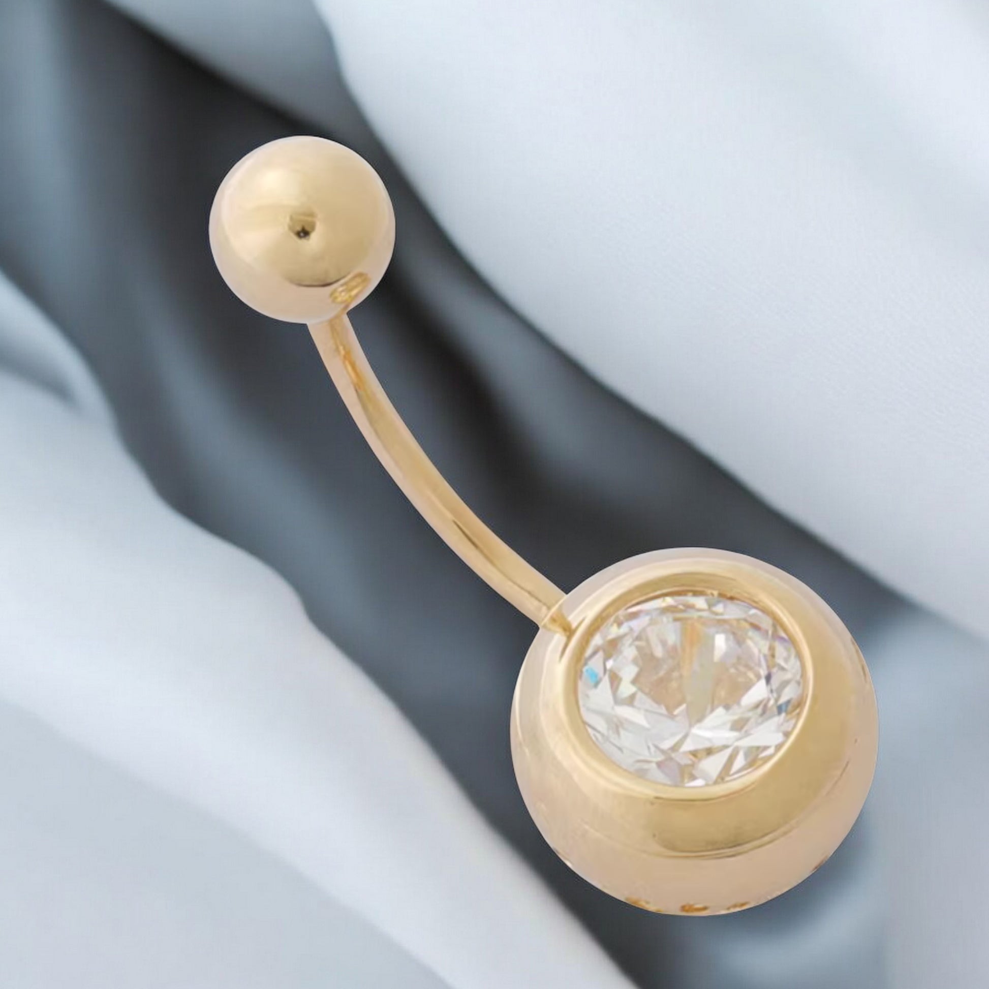 14K Real Gold Screw Minimal Zircon Belly Button Ring