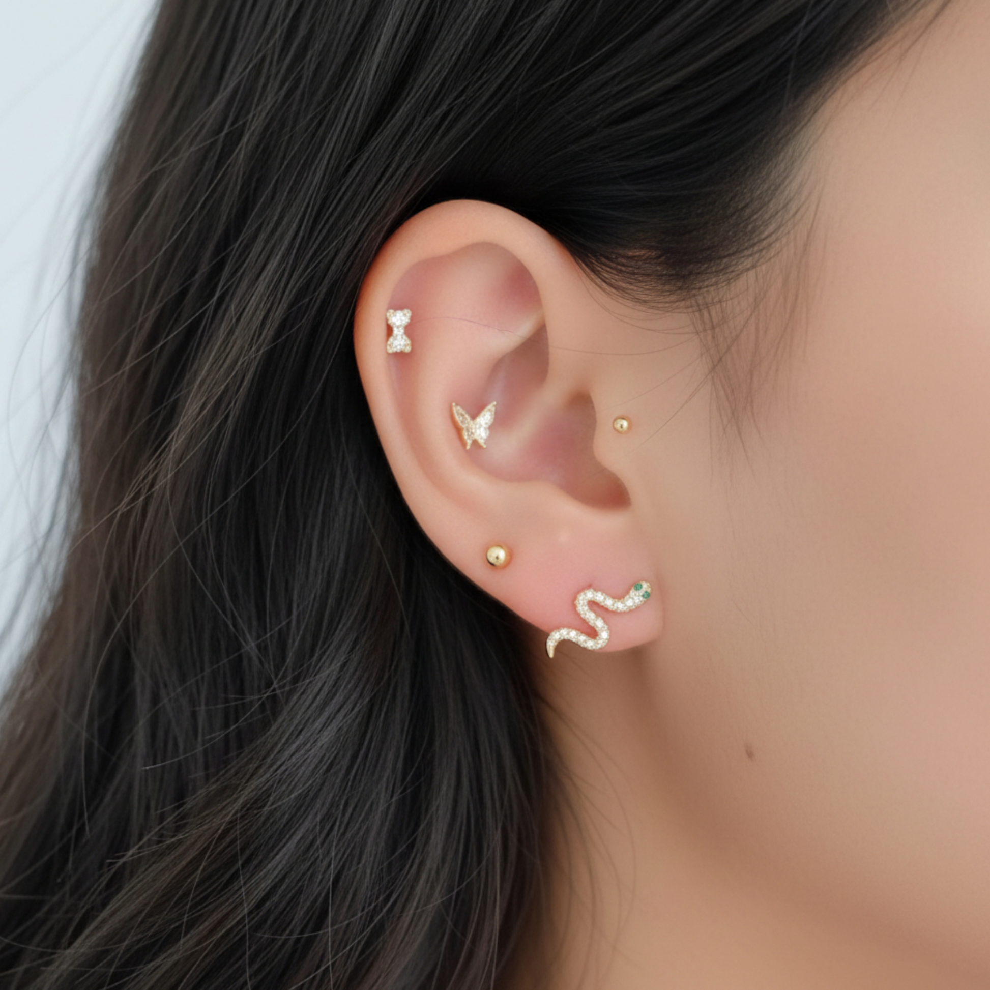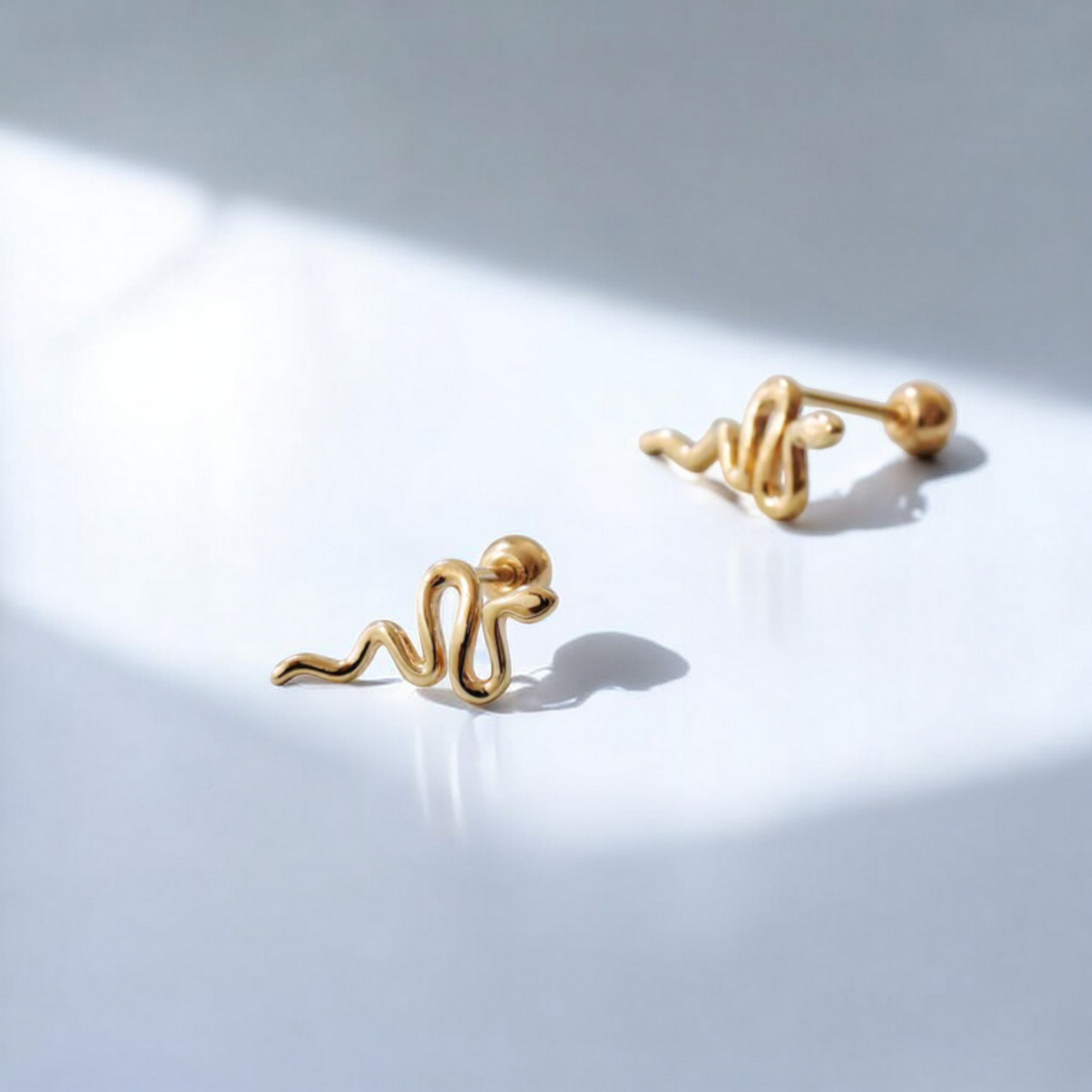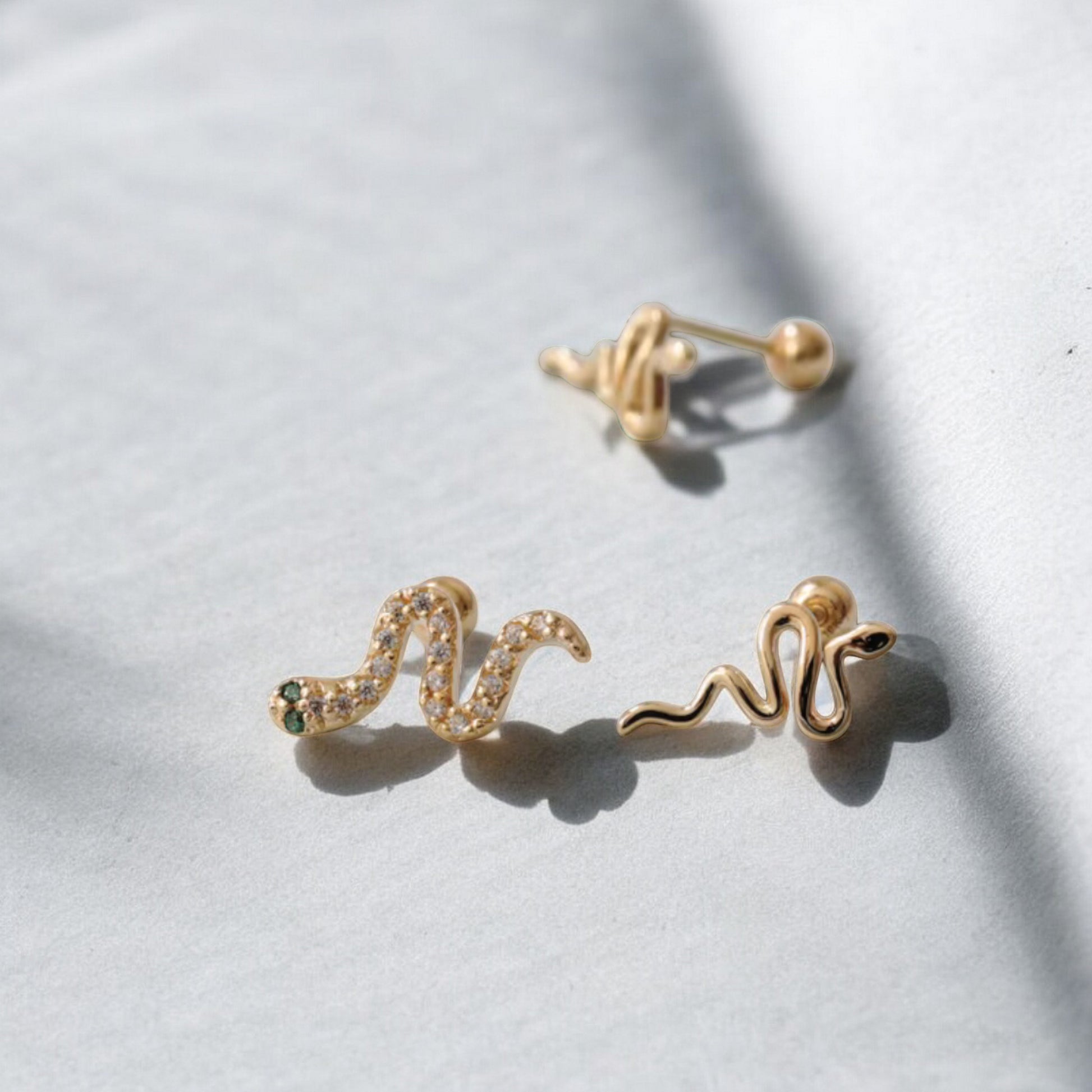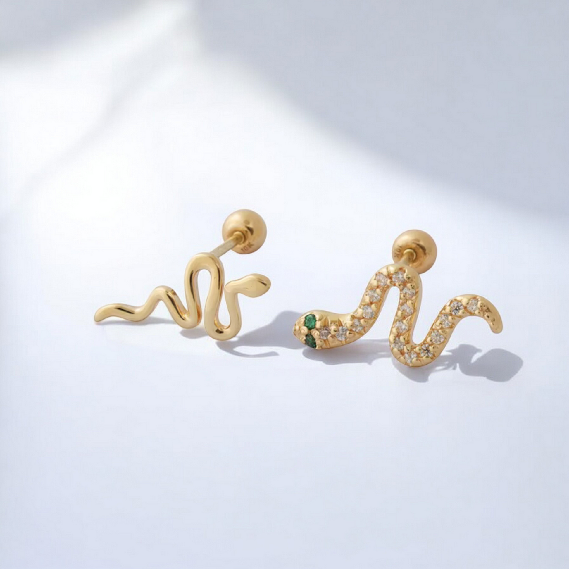 Elevate your jewelry collection with these 10K real gold screw-on earrings, crafted in two distinctive styles. Choose between the sparkling zircon snake design for added brilliance or the sleek plain snake silhouette for understated elegance. The secure screw-back mechanism ensures your earrings stay firmly in place throughout the day, making them ideal for active lifestyles or sensitive ears. Authentic 10K gold construction guarantees durability and lasting value, while the timeless snake motif adds a touch of sophisticated edge to any ensemble.