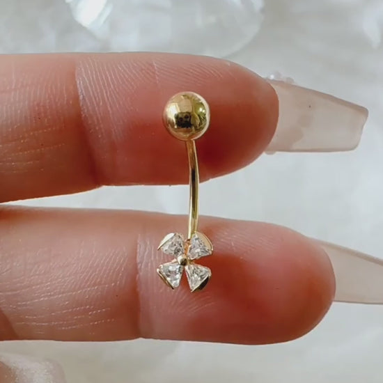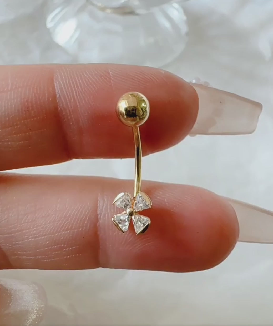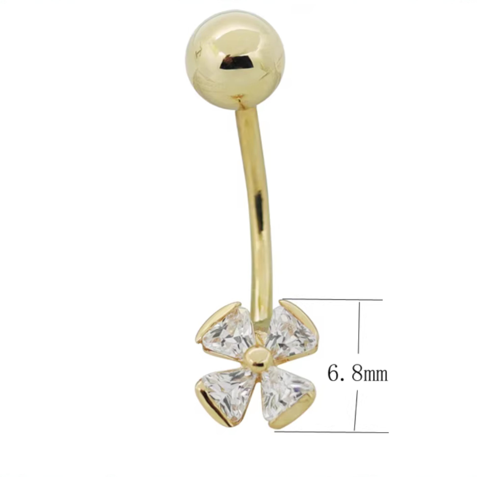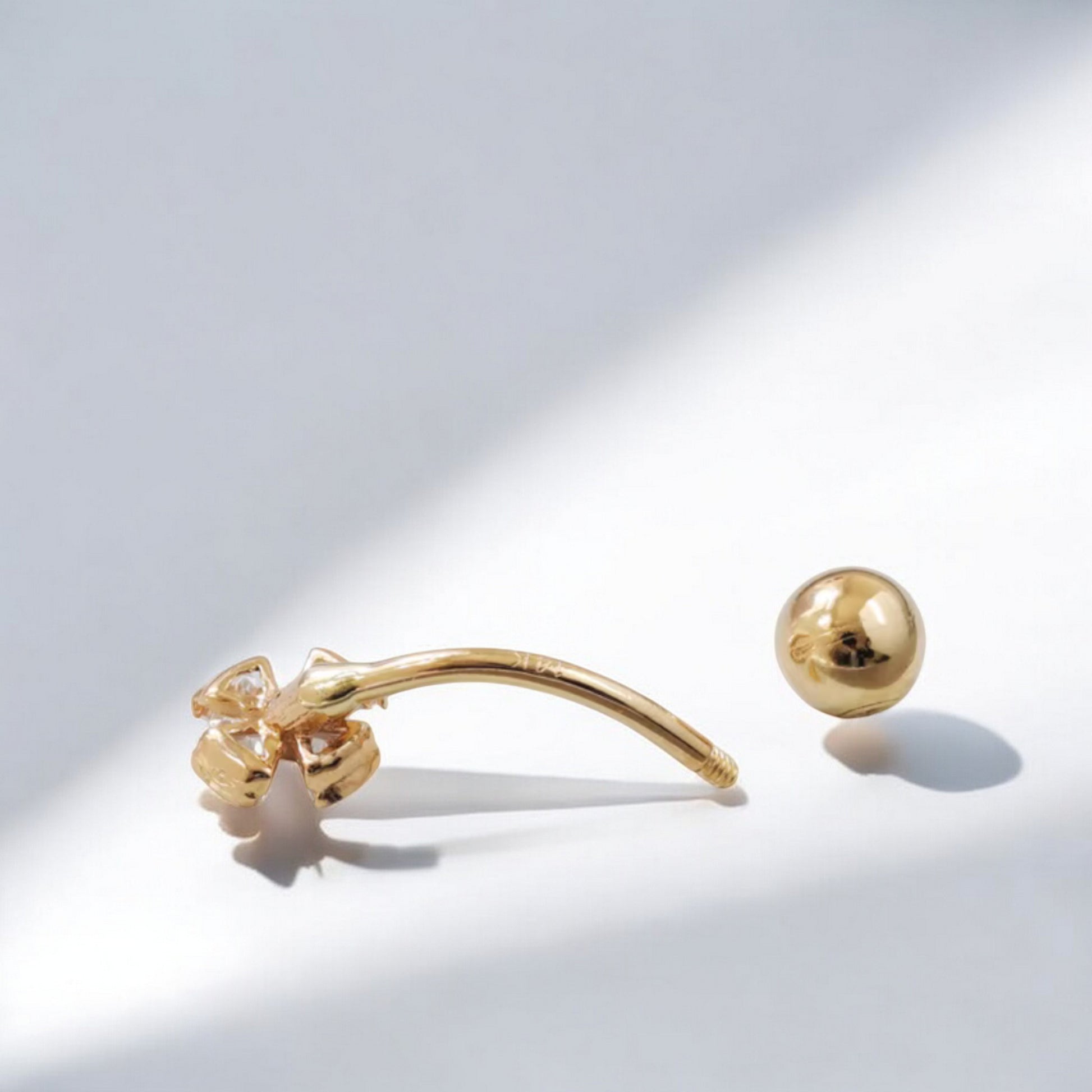 14K Real Gold Screw On Lucky Clover Zircon Belly Button Ring