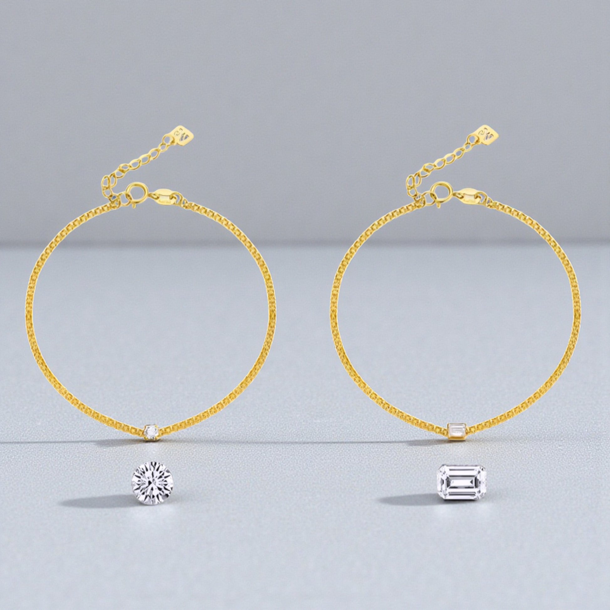 Elevate your jewelry collection with this sophisticated 18K gold bracelet, featuring your choice of genuine diamond pendants in either classic round or contemporary square cuts. Each pendant showcases authentic diamonds set in premium 18K gold, delivering timeless elegance with modern versatility. The expertly crafted design allows you to select the silhouette that best complements your personal style, whether you prefer the traditional brilliance of a round stone or the geometric appeal of a square setting. Perfect for layering or wearing as a standalone statement piece, this bracelet combines fine craftsmanship with the enduring beauty of genuine diamonds.