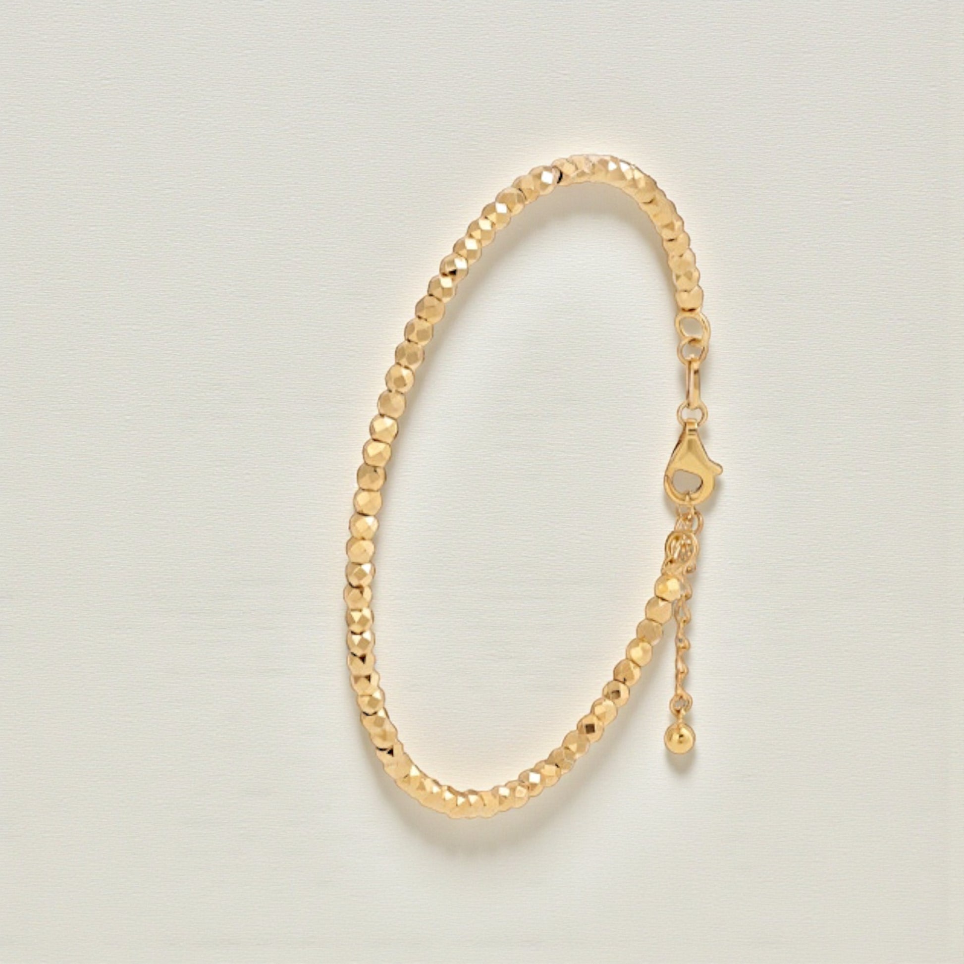 18K Gold Laser Beads Soft Bangle Bracelet with Adjustable Chain