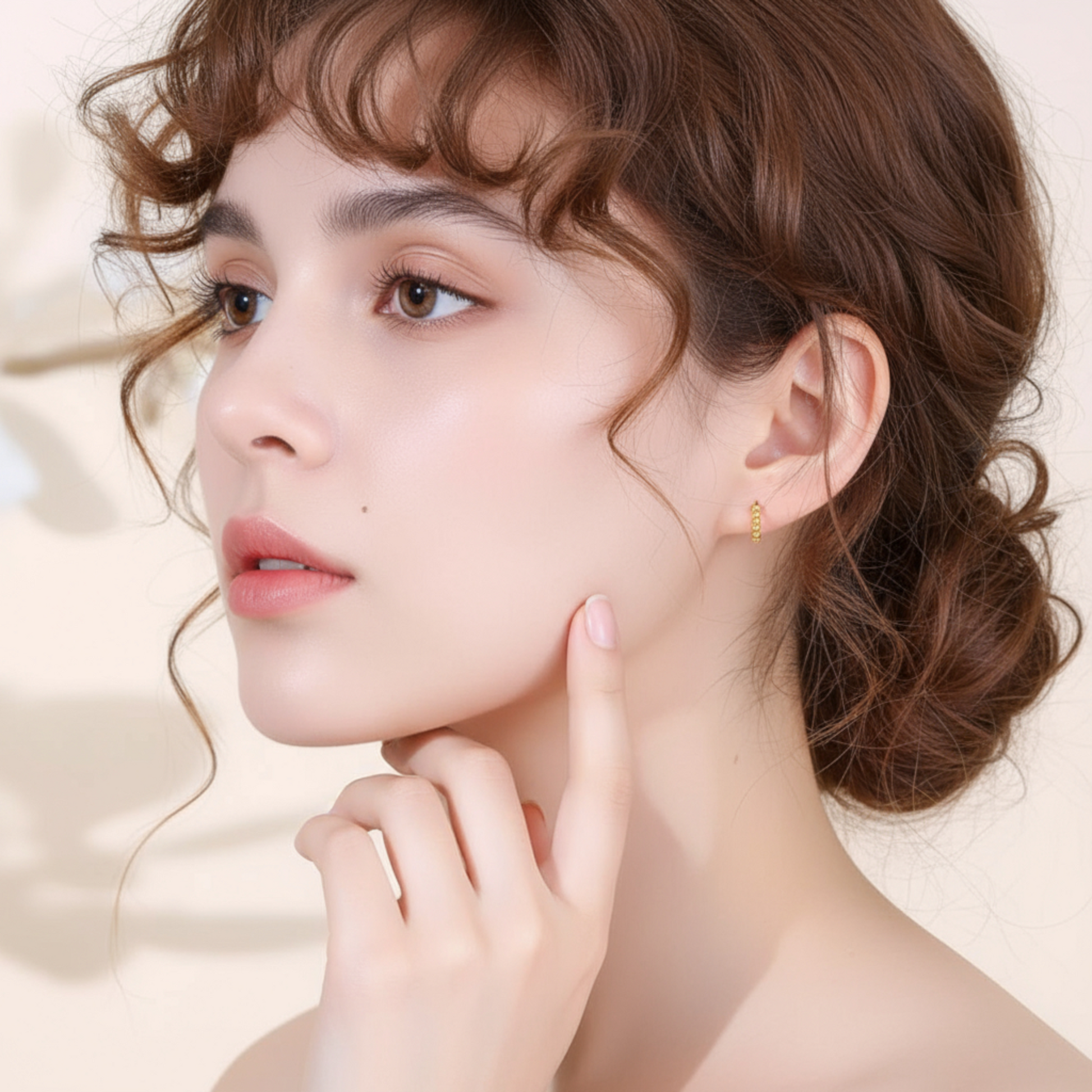 18K Gold Beads Shinning Stud Earrings