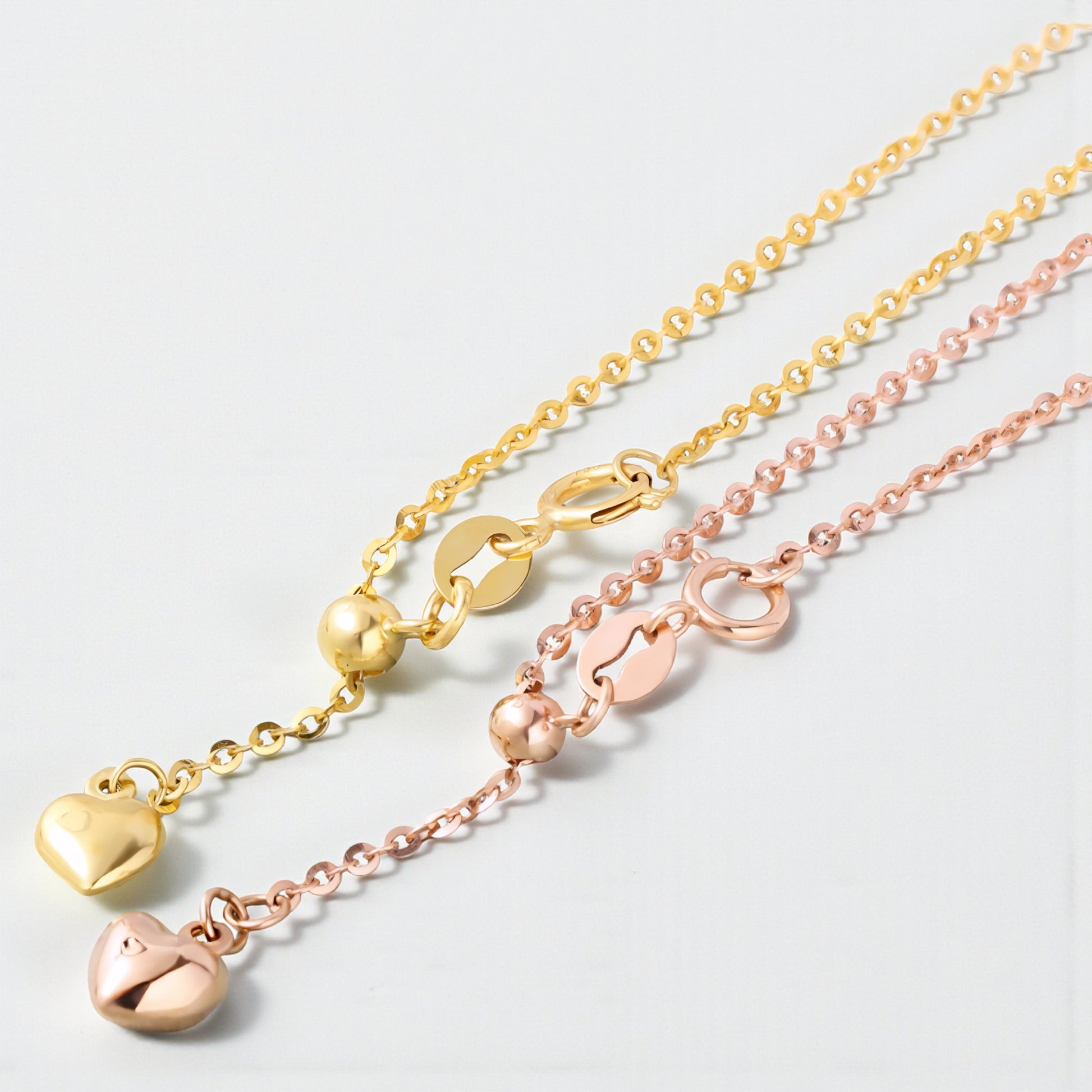 18K Yellow Rose and White Gold Chain Heart Charm Adjustable Necklace
