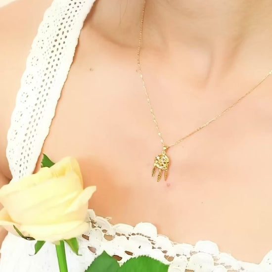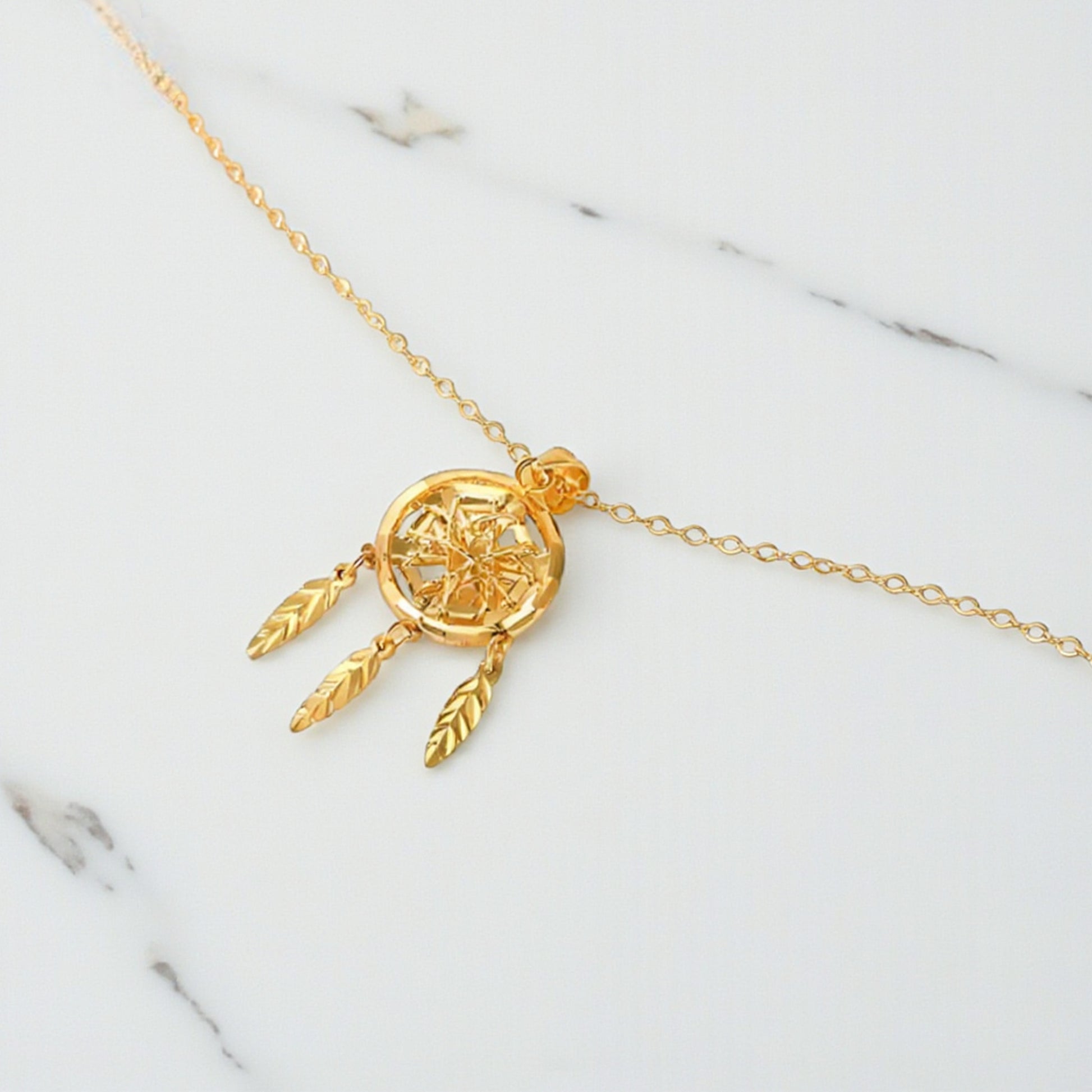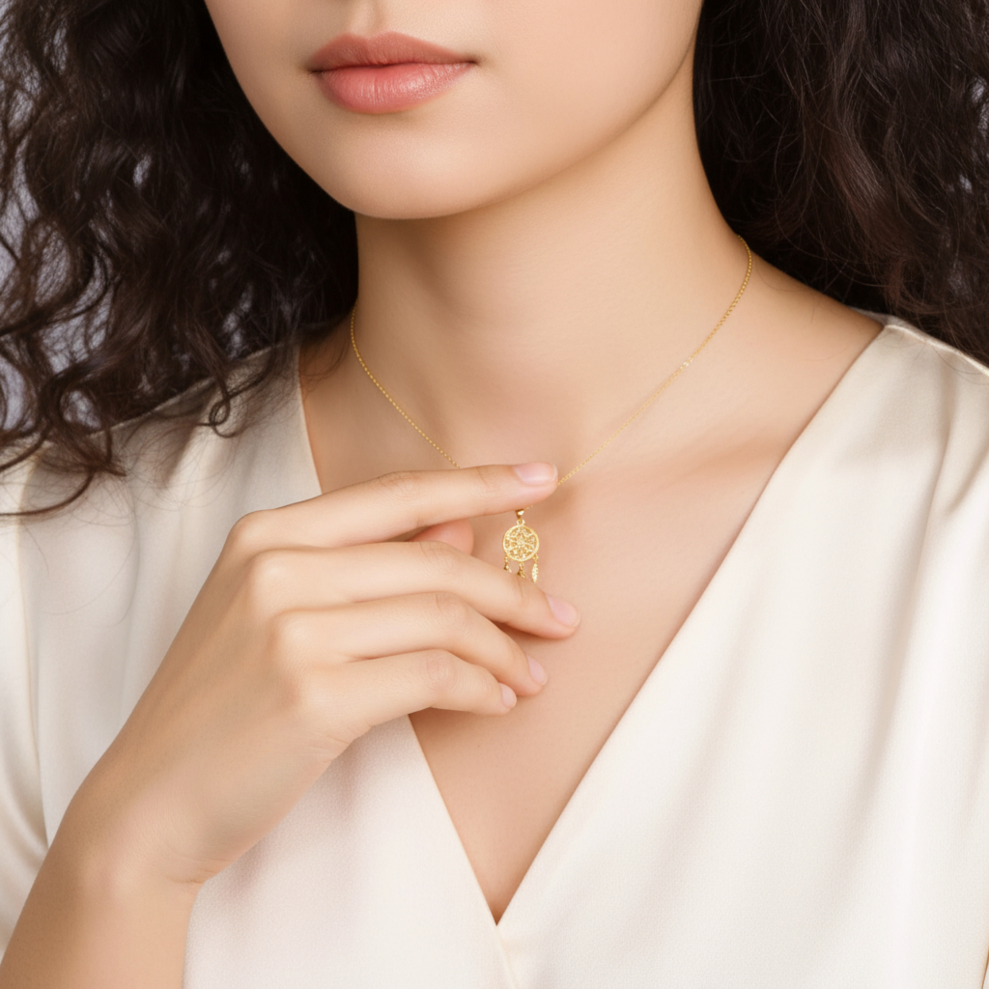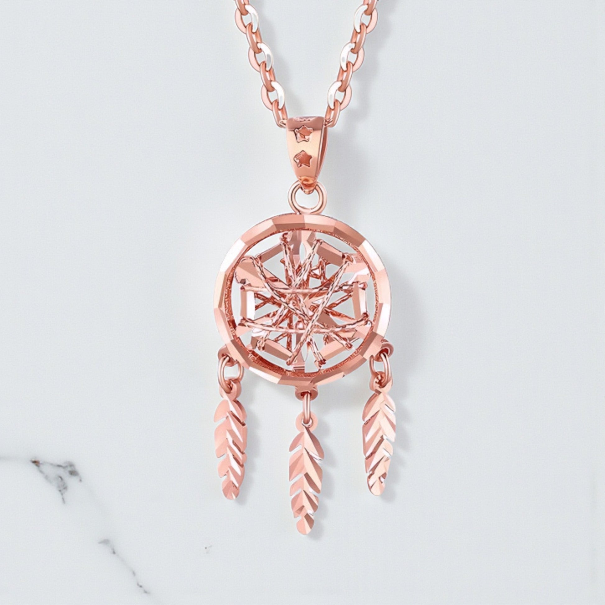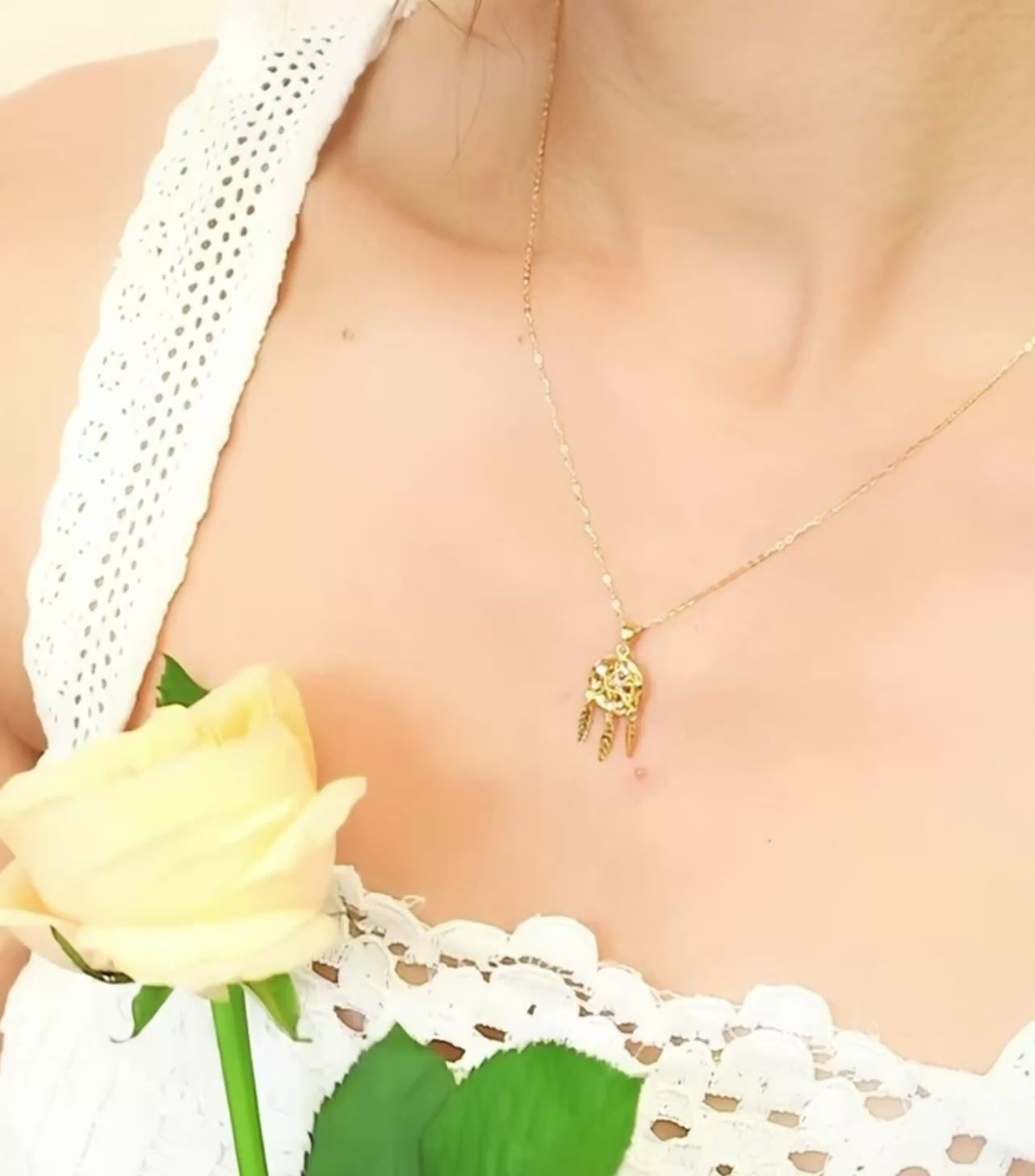 18K Gold Rose Gold Dreamcatcher Hollow Design Pendant Luxurious charm Necklace
