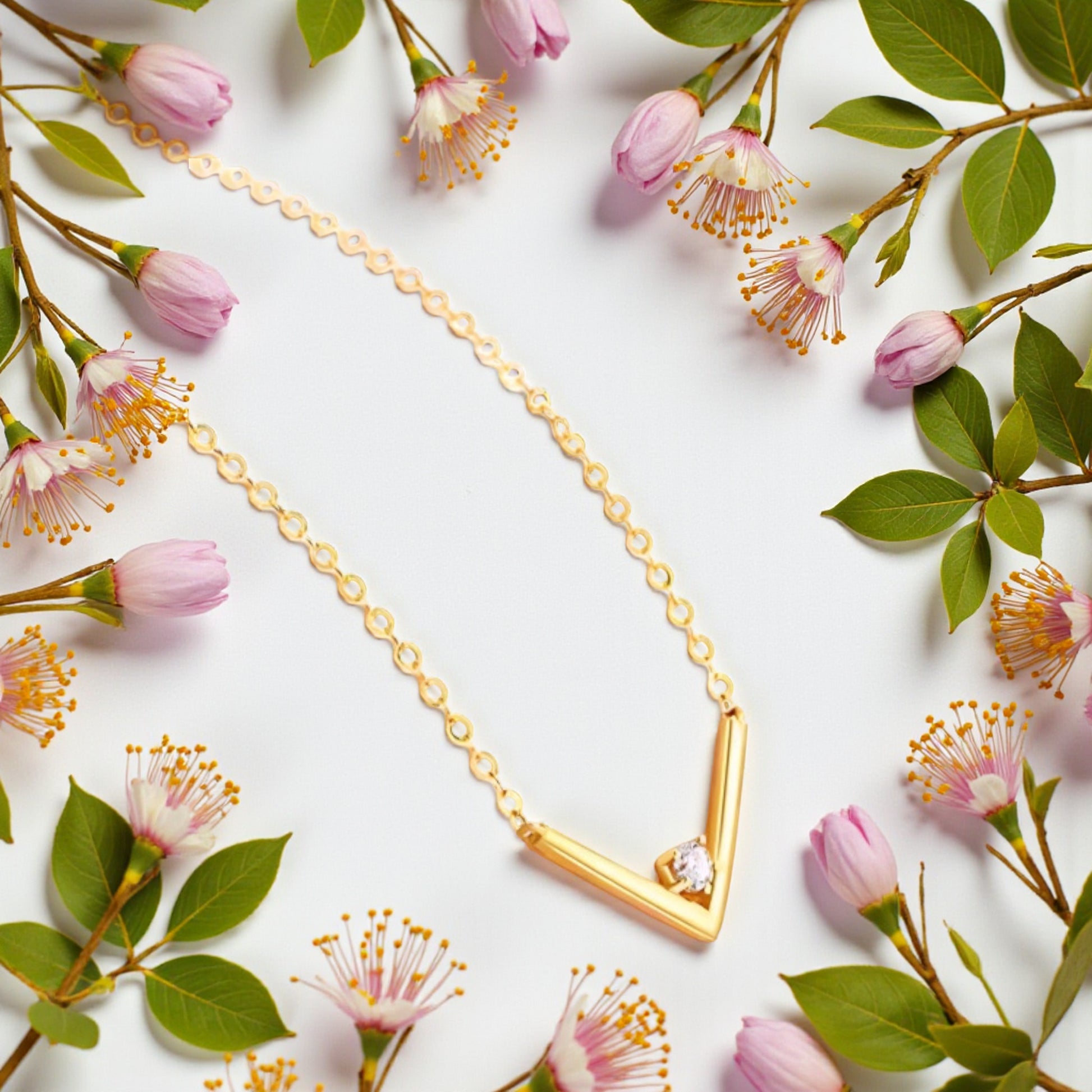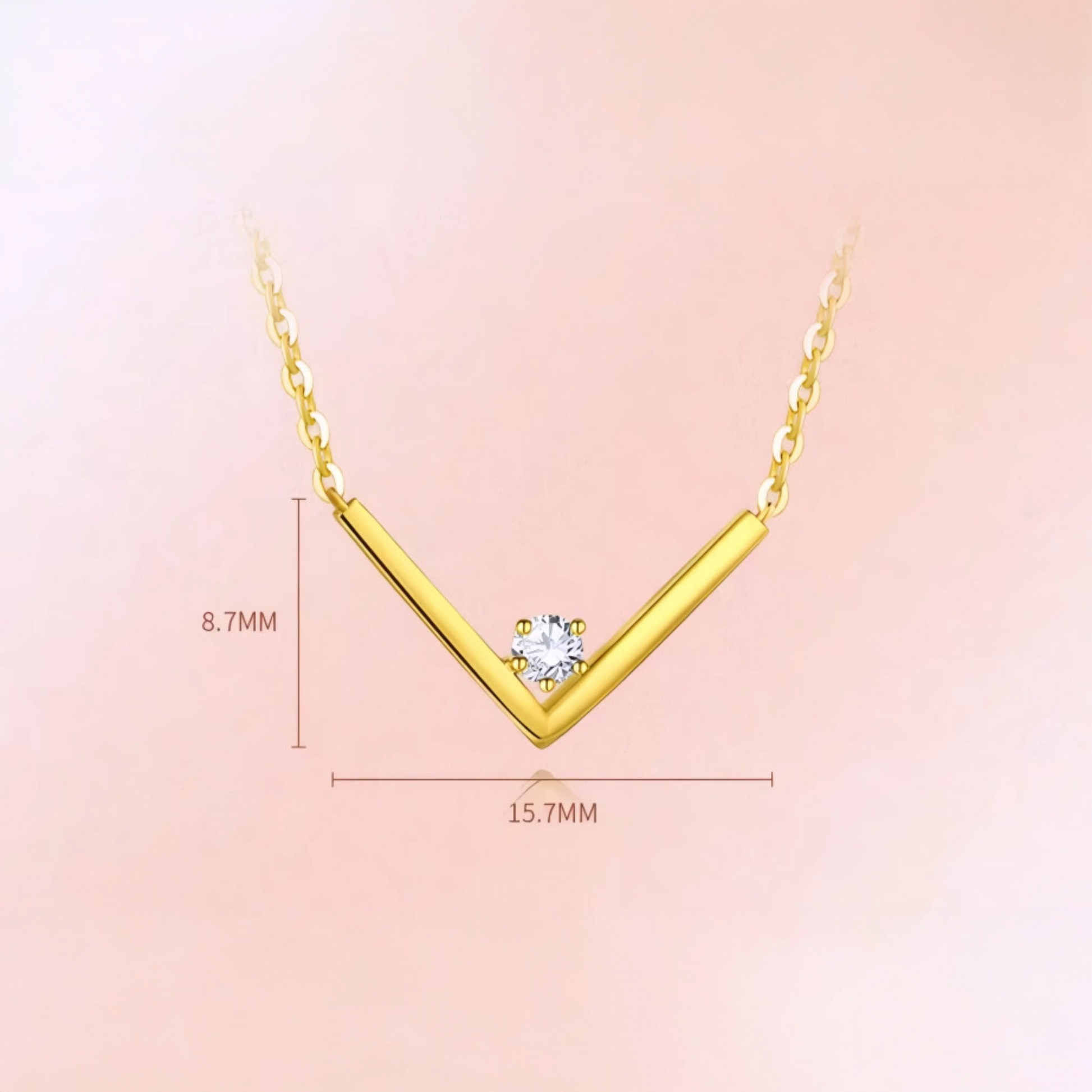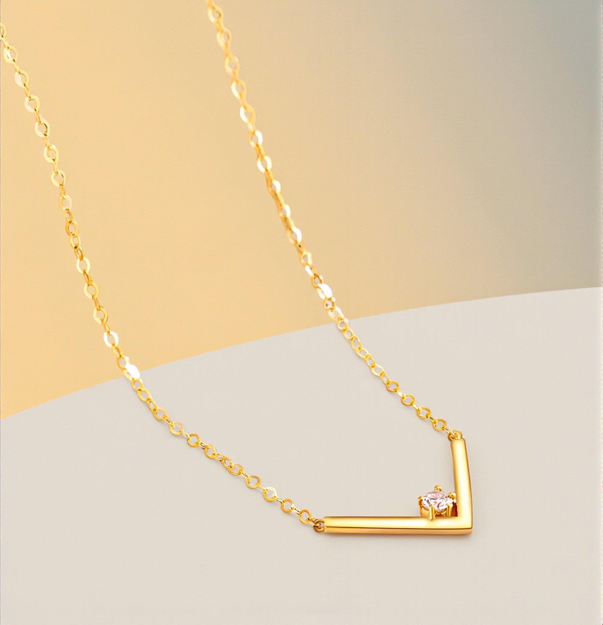 18K Gold Genuine Diamond V Shape Minimal Pendant Luxurious charm Necklace