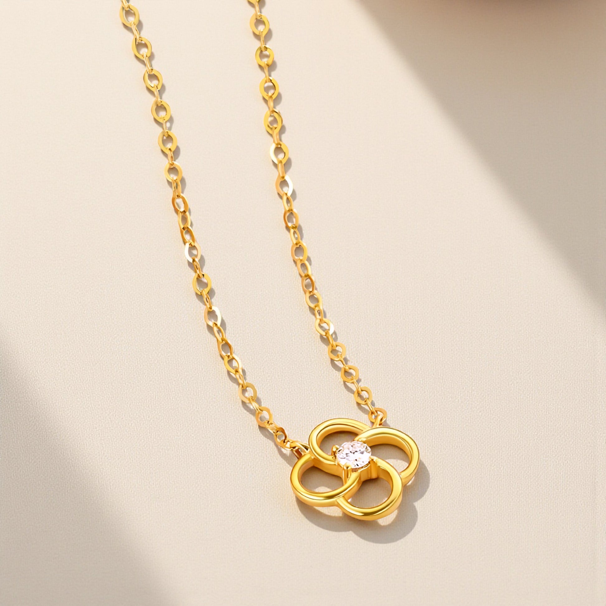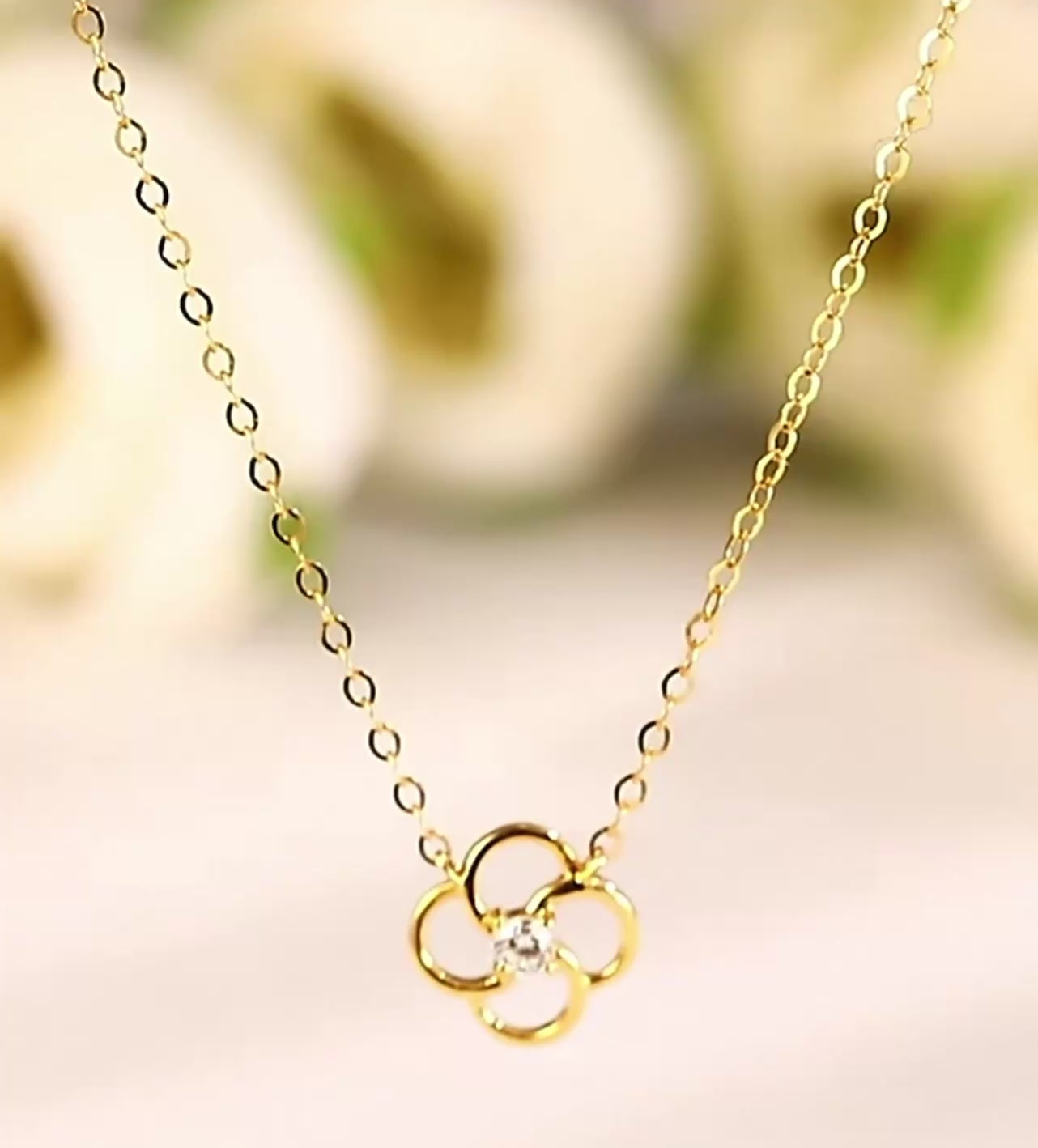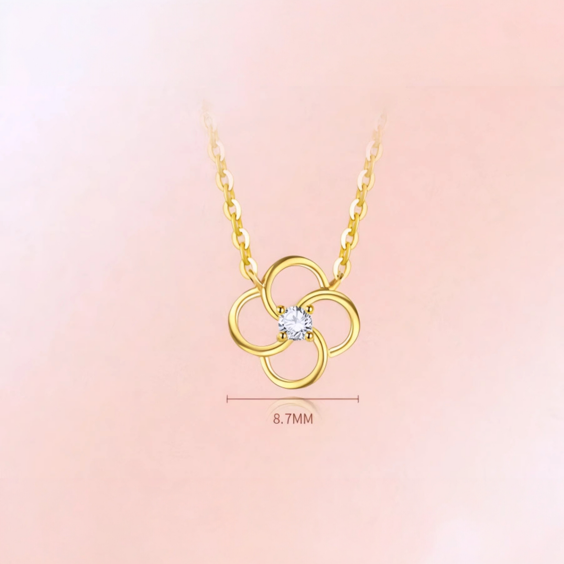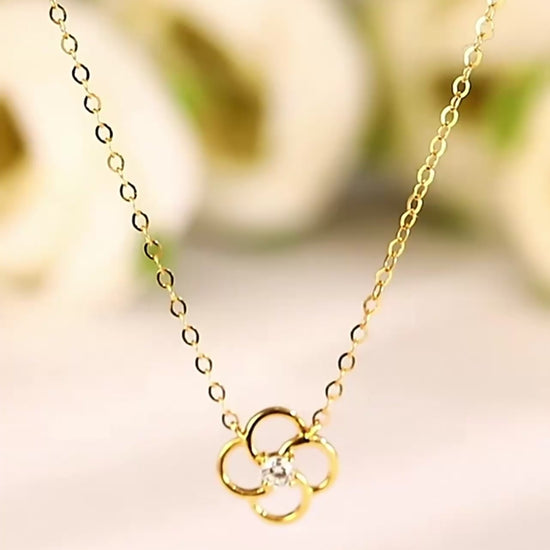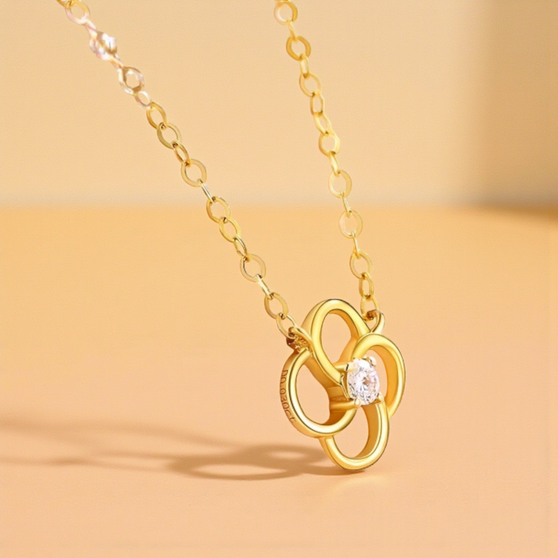18K Gold Genuine Diamond Flower Clover Pendant Luxurious charm Necklace