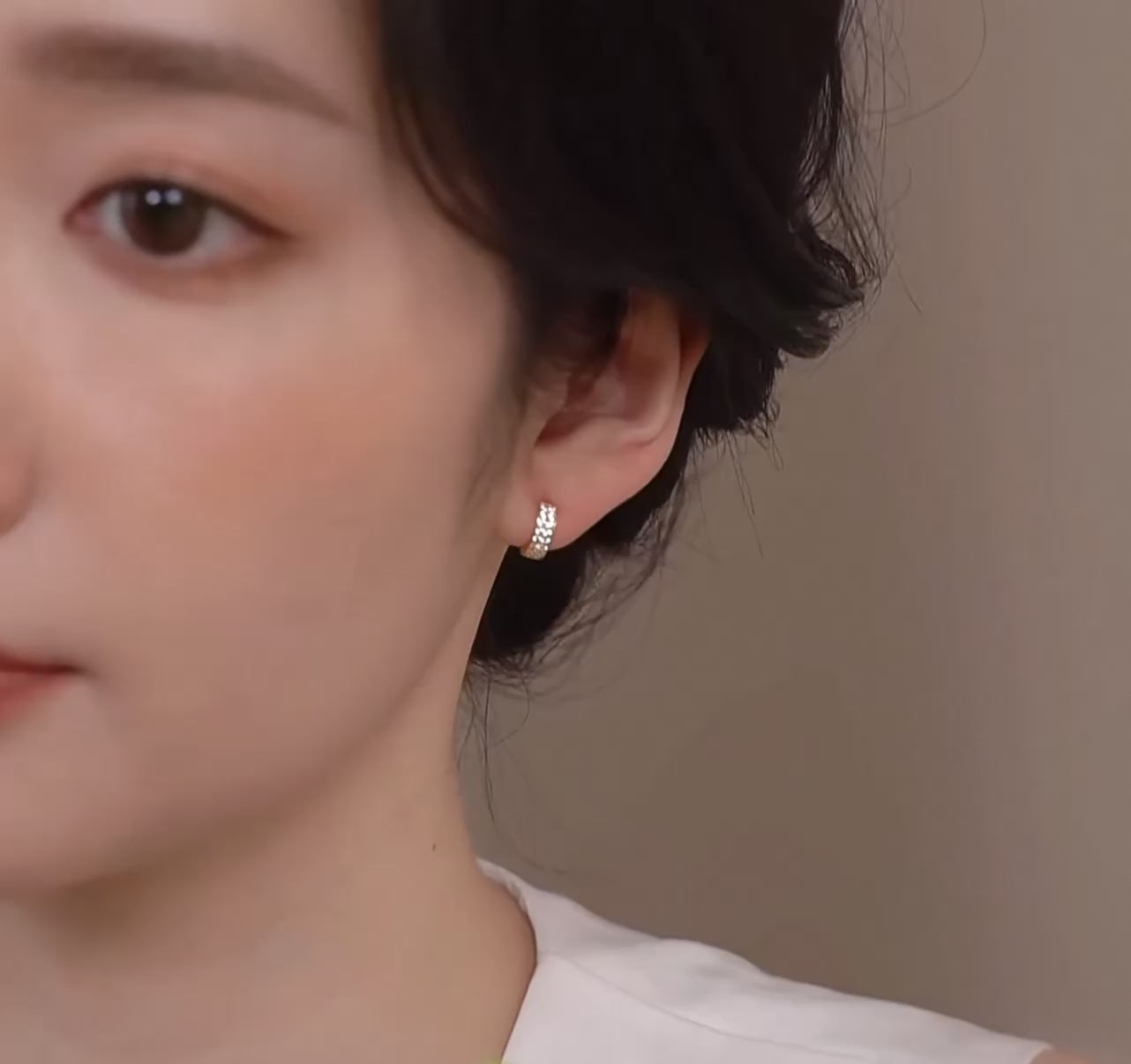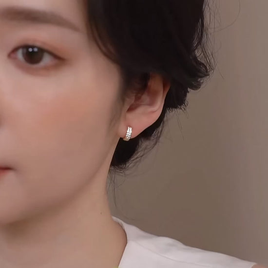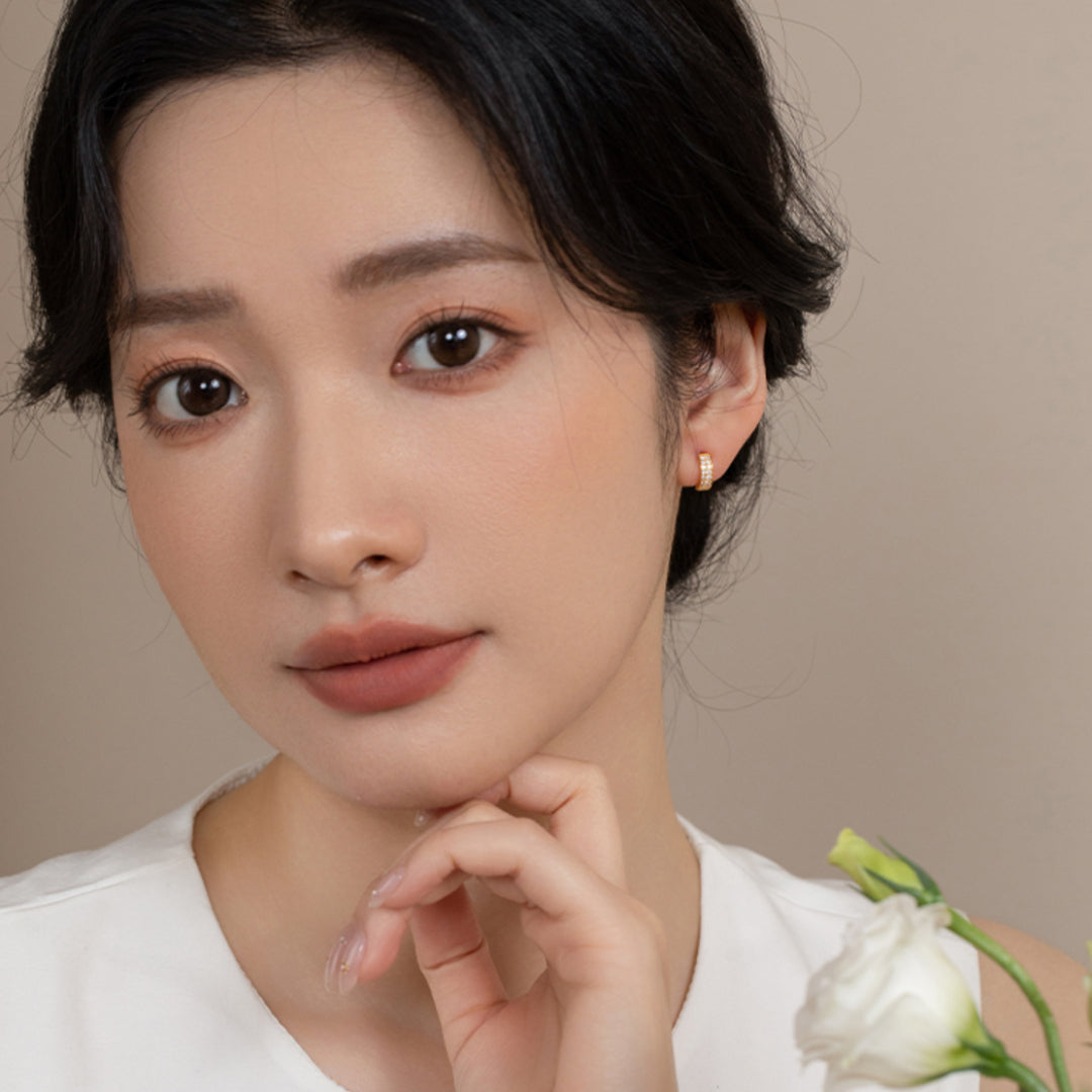 18K Gold Inlaid Zircon Stud earrings with stylish half-circle design shining Earrings