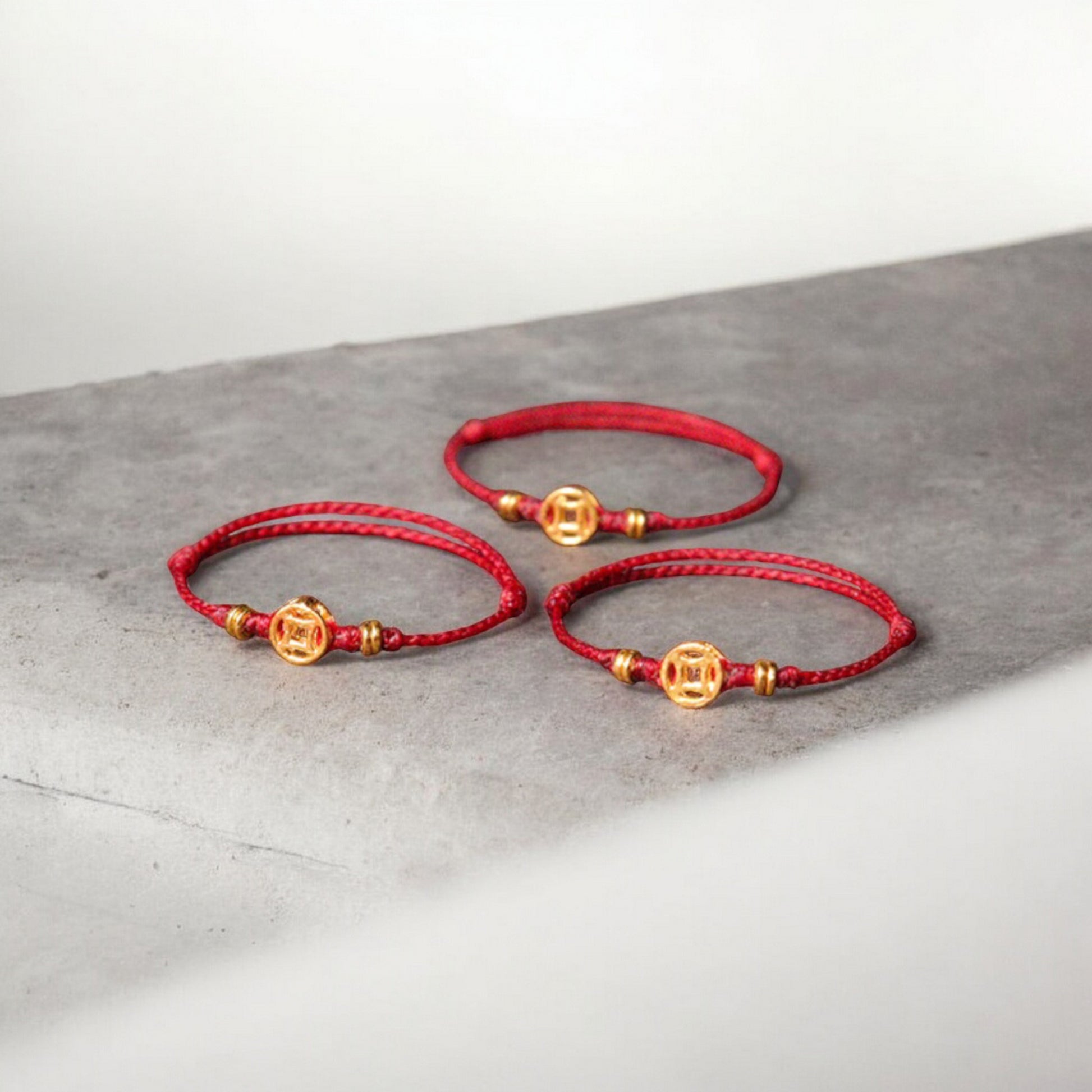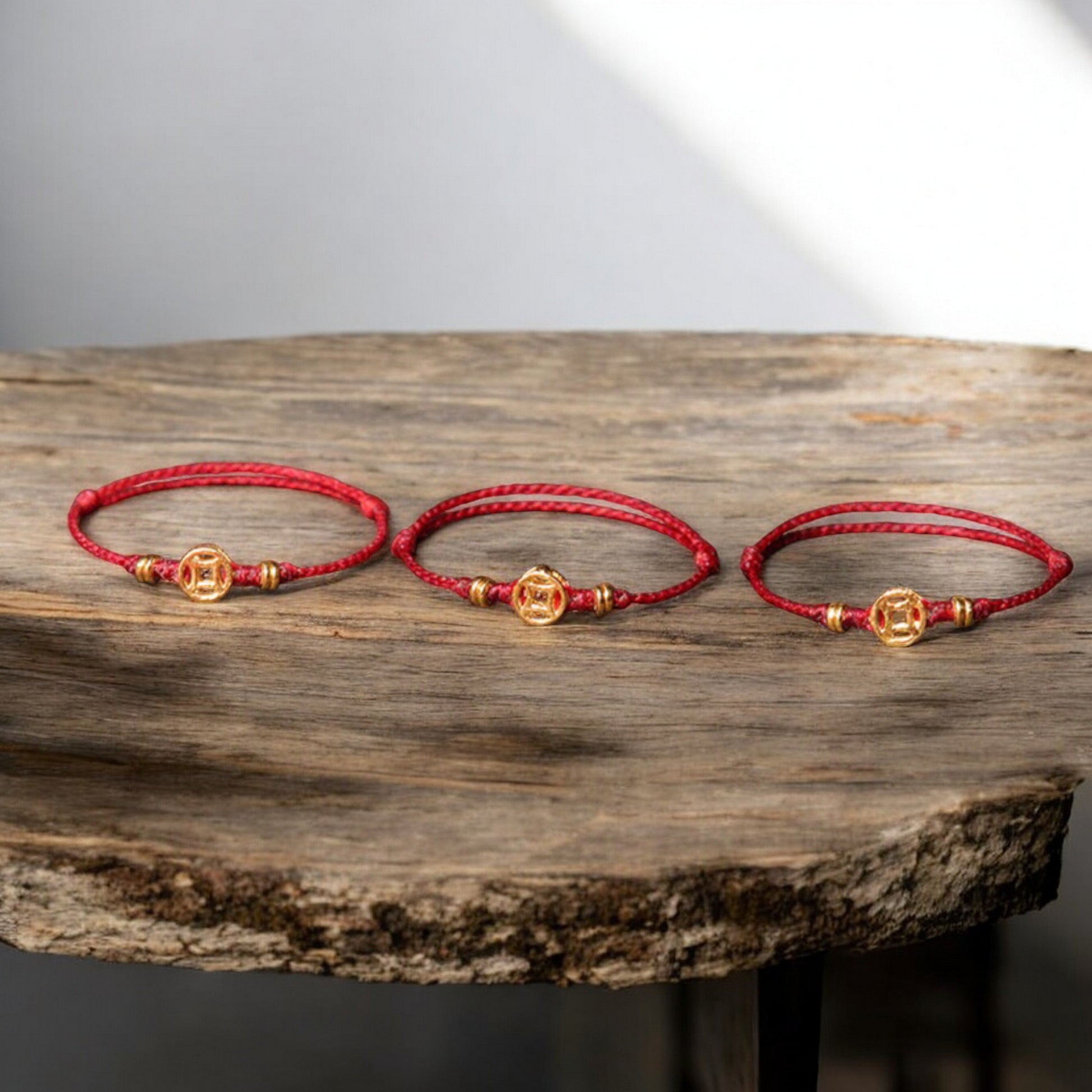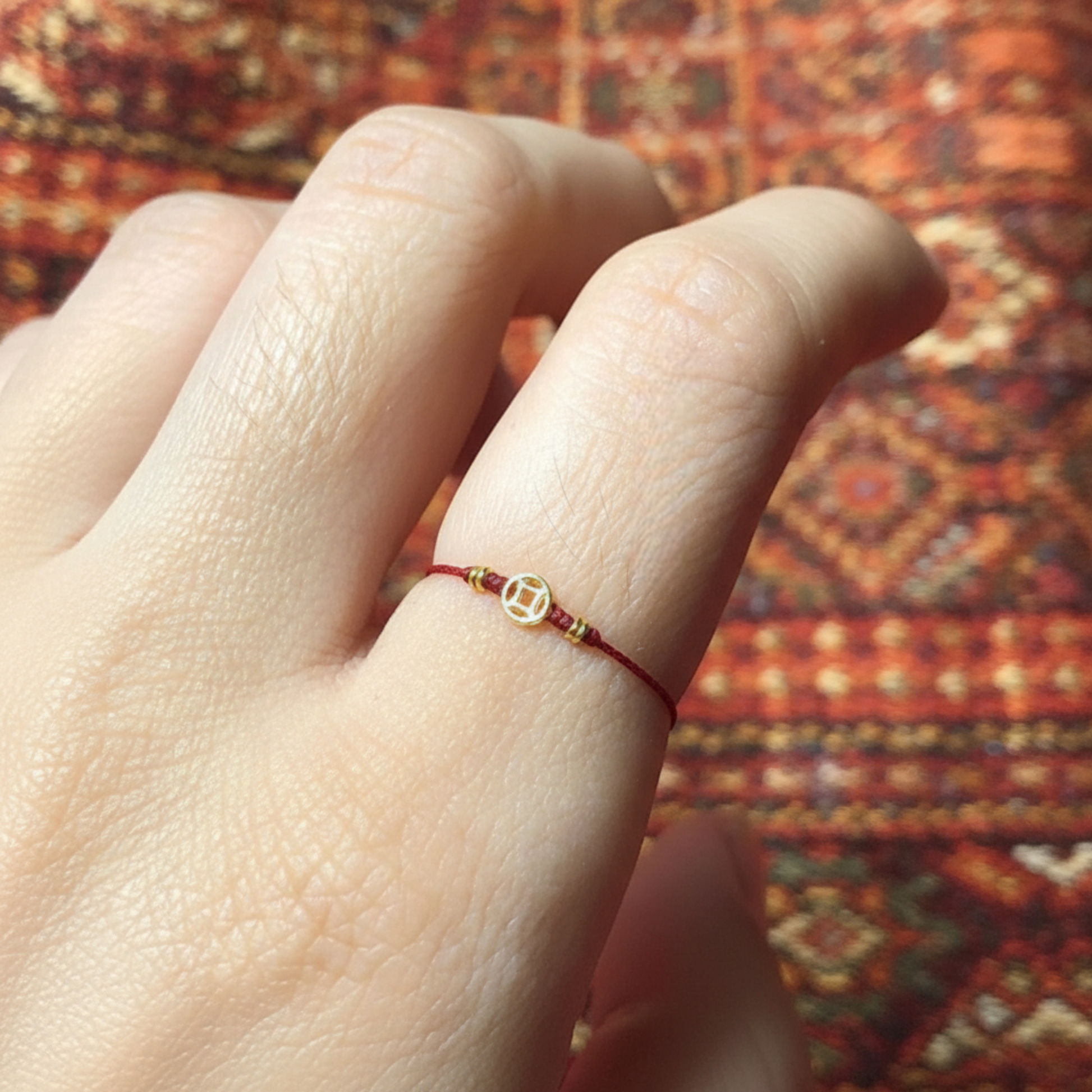 24K Gold Lucky Chinese Coin Rope Adjustable Hand-Woven Ring