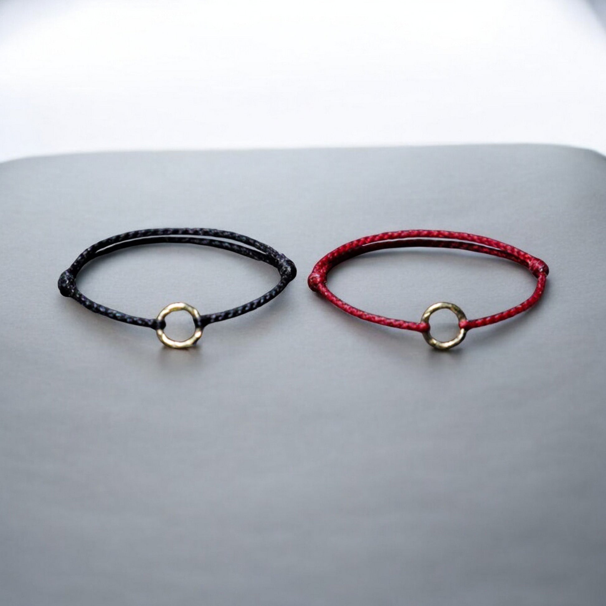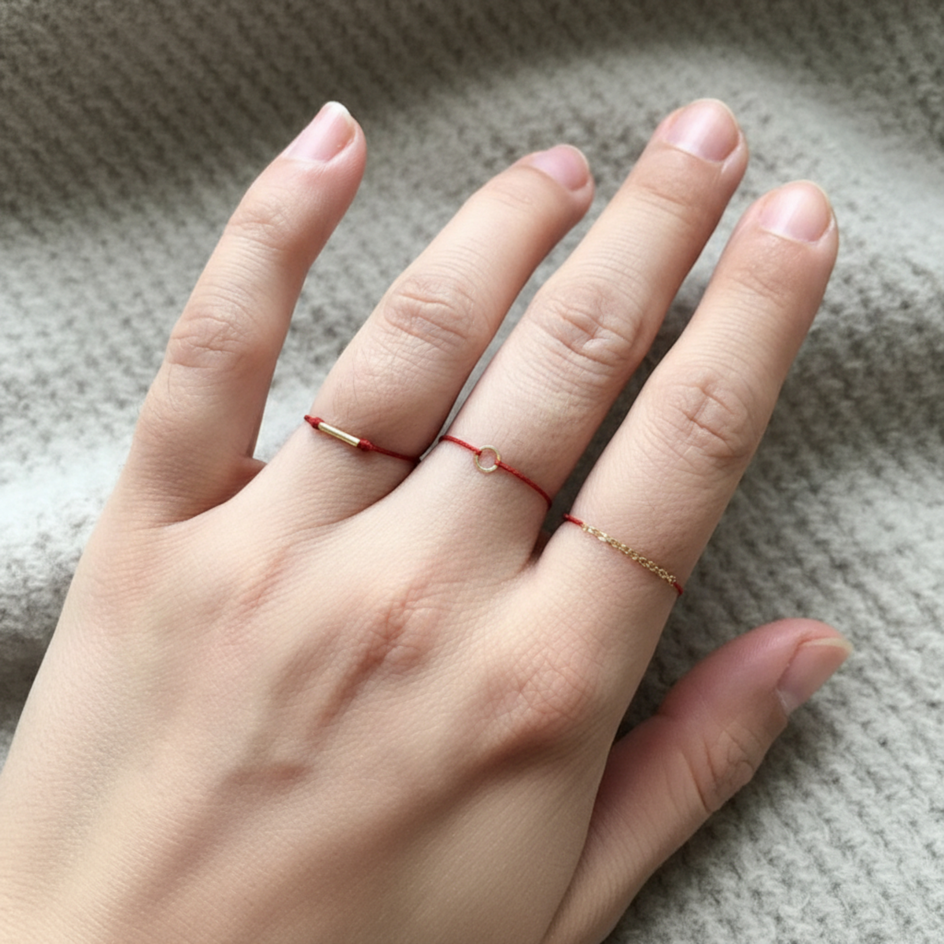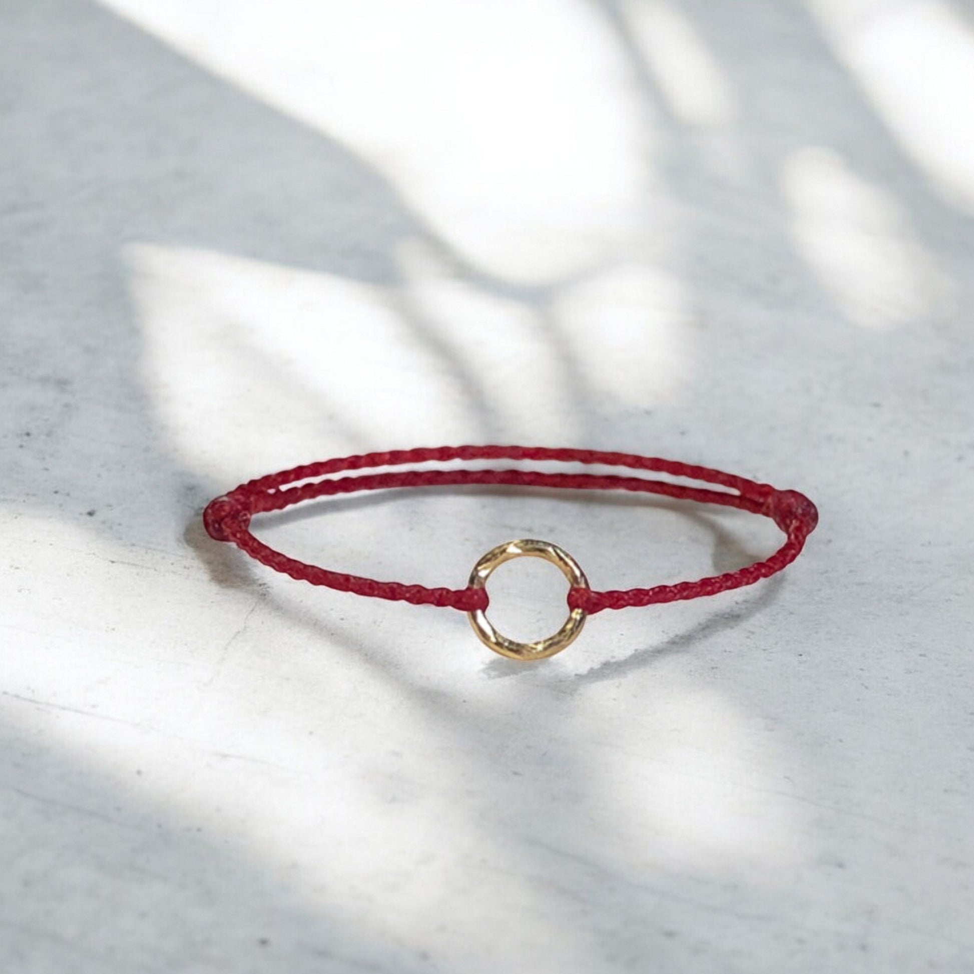 18K Gold Lucky Infinity Loop Round Charm Rope Adjustable Hand-Woven Ring