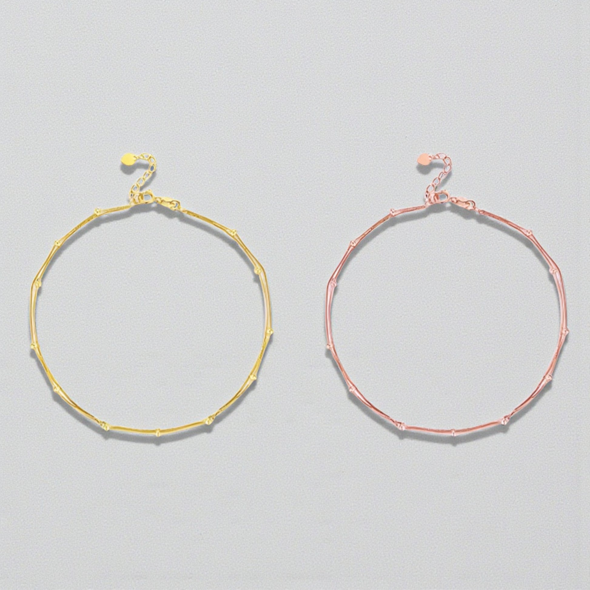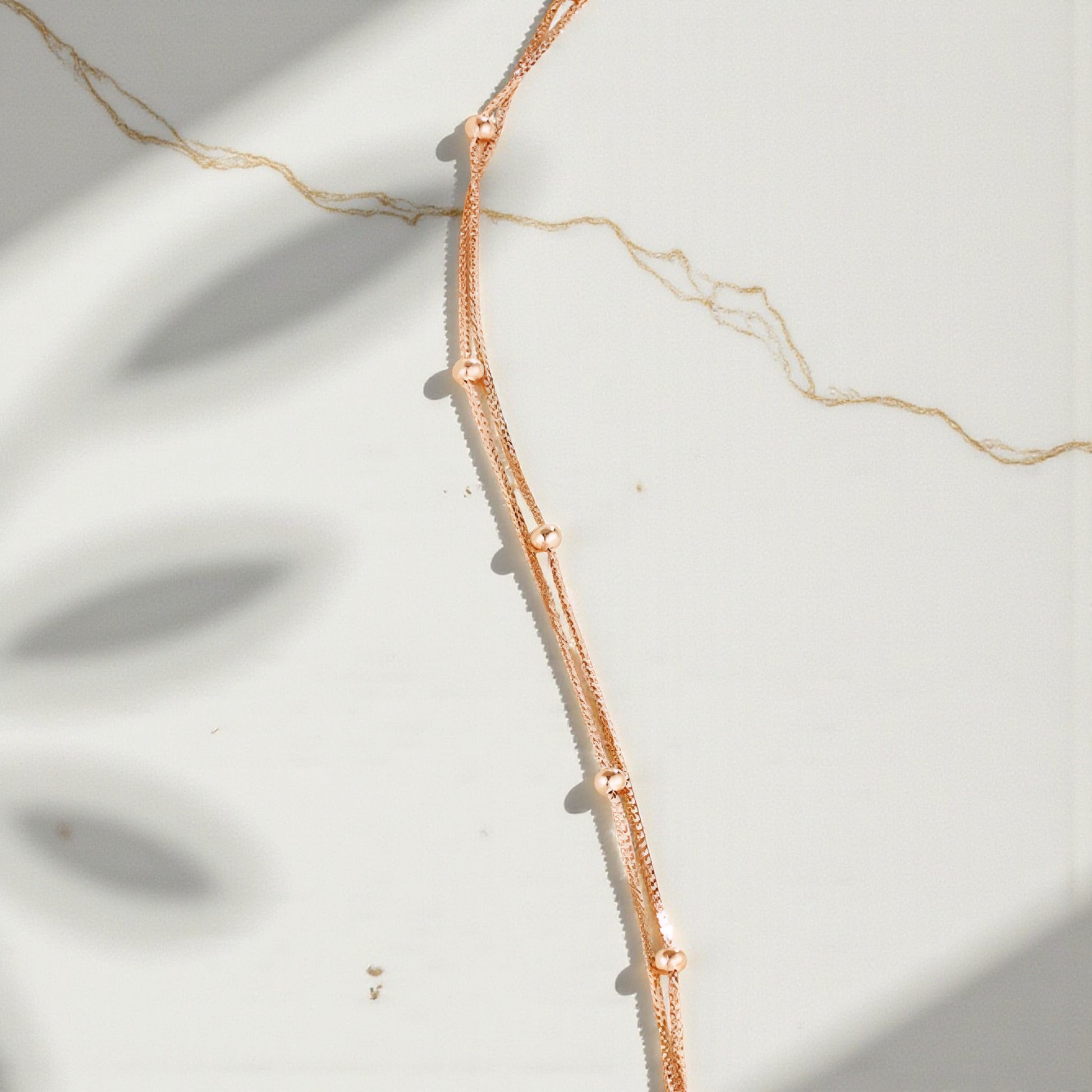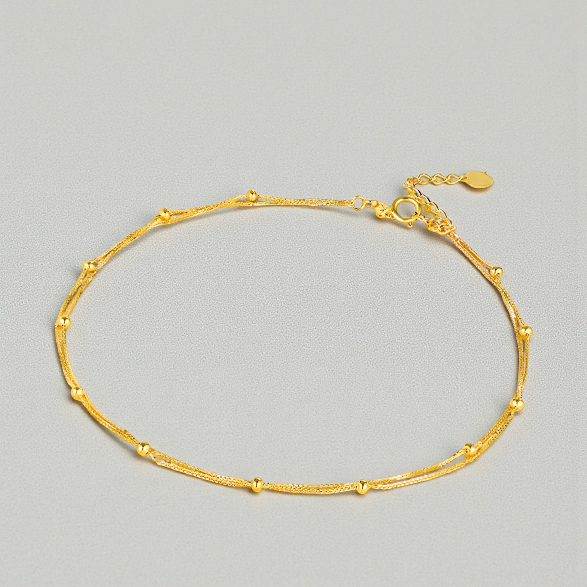 18K Yellow Gold Rose Gold Minimal Chopin Double Layer Beads Anklet