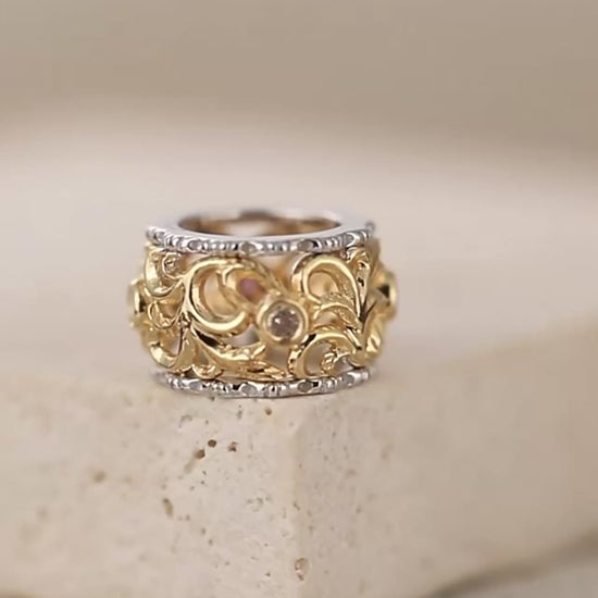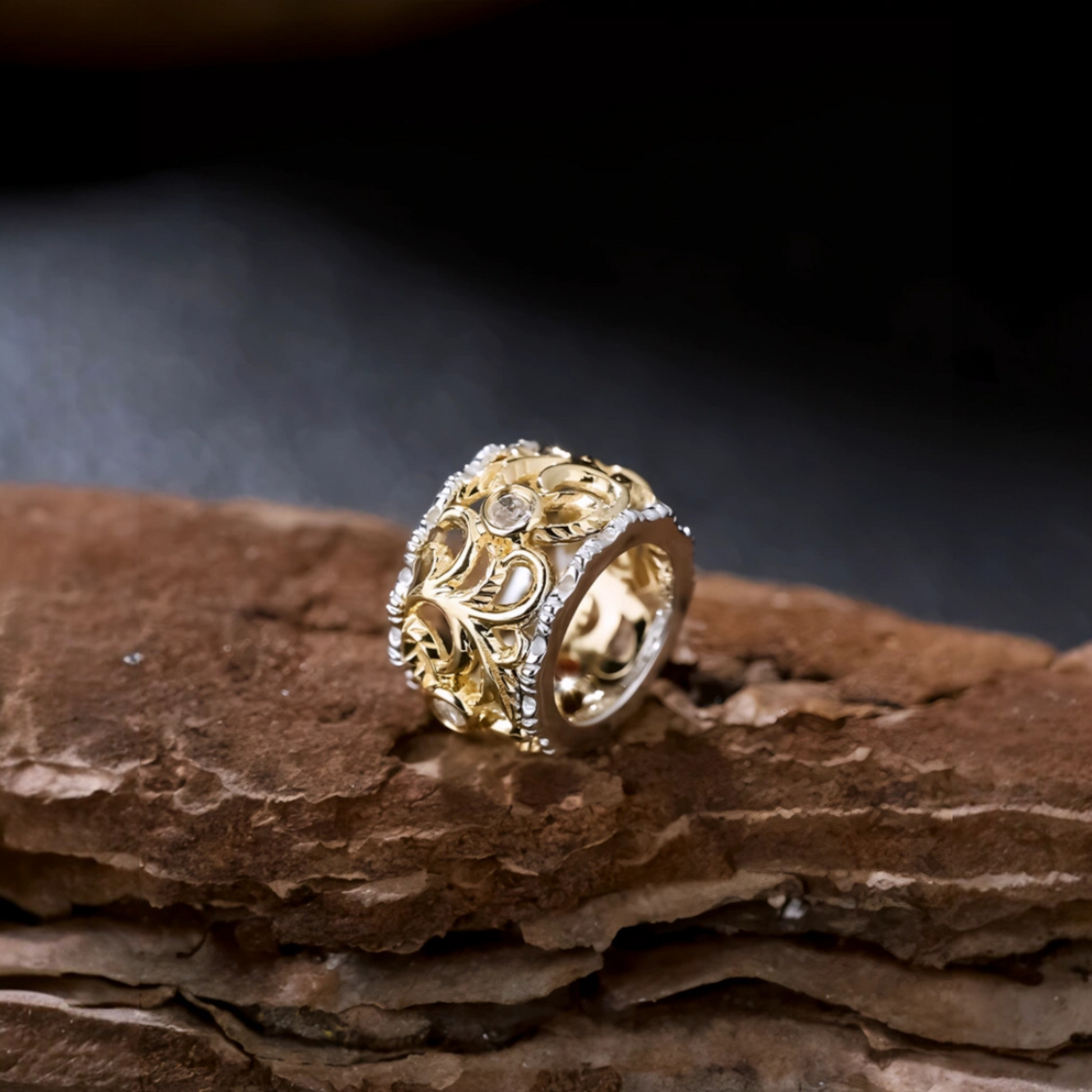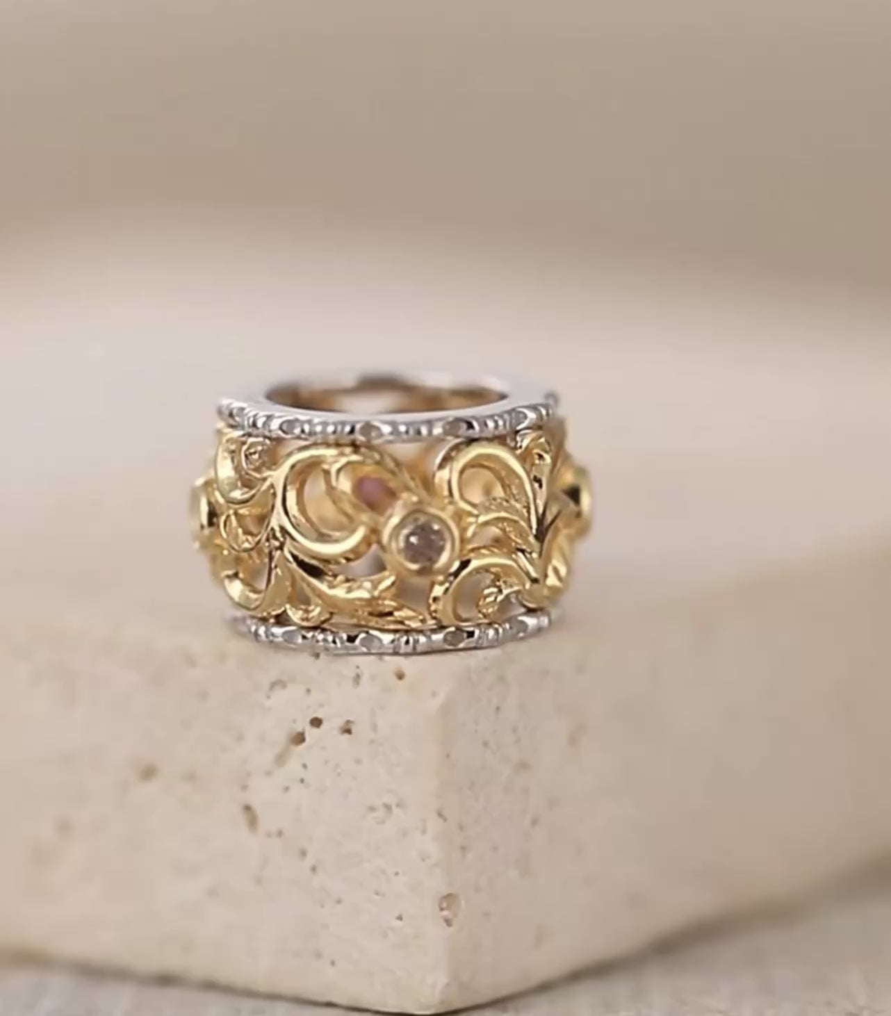 18K Gold Round Elegant Diamond Carving Ring Pendant