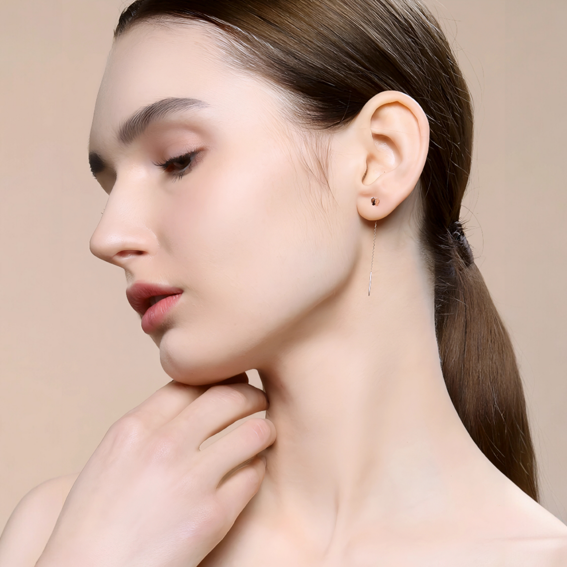 Delicate butterfly threader earrings crafted in 18K rose gold, designed for those who appreciate refined, contemporary jewelry. These earrings feature an elegant threader mechanism that glides smoothly through pierced ears, offering a secure yet comfortable fit without traditional backs. The butterfly motif brings a touch of nature-inspired sophistication to any ensemble, from everyday wear to special occasions. Perfect for layering or wearing solo, these pieces combine timeless elegance with modern design sensibilities.