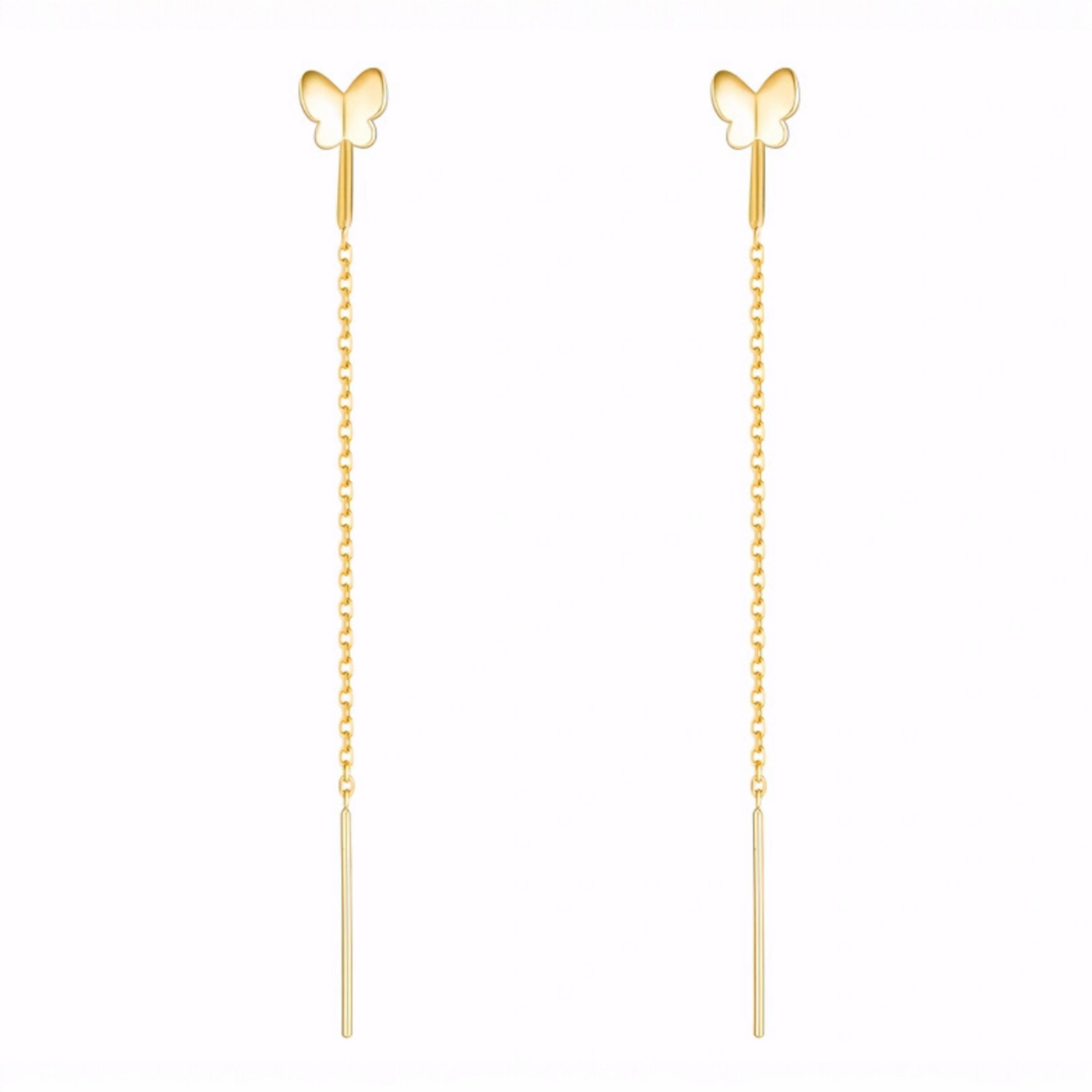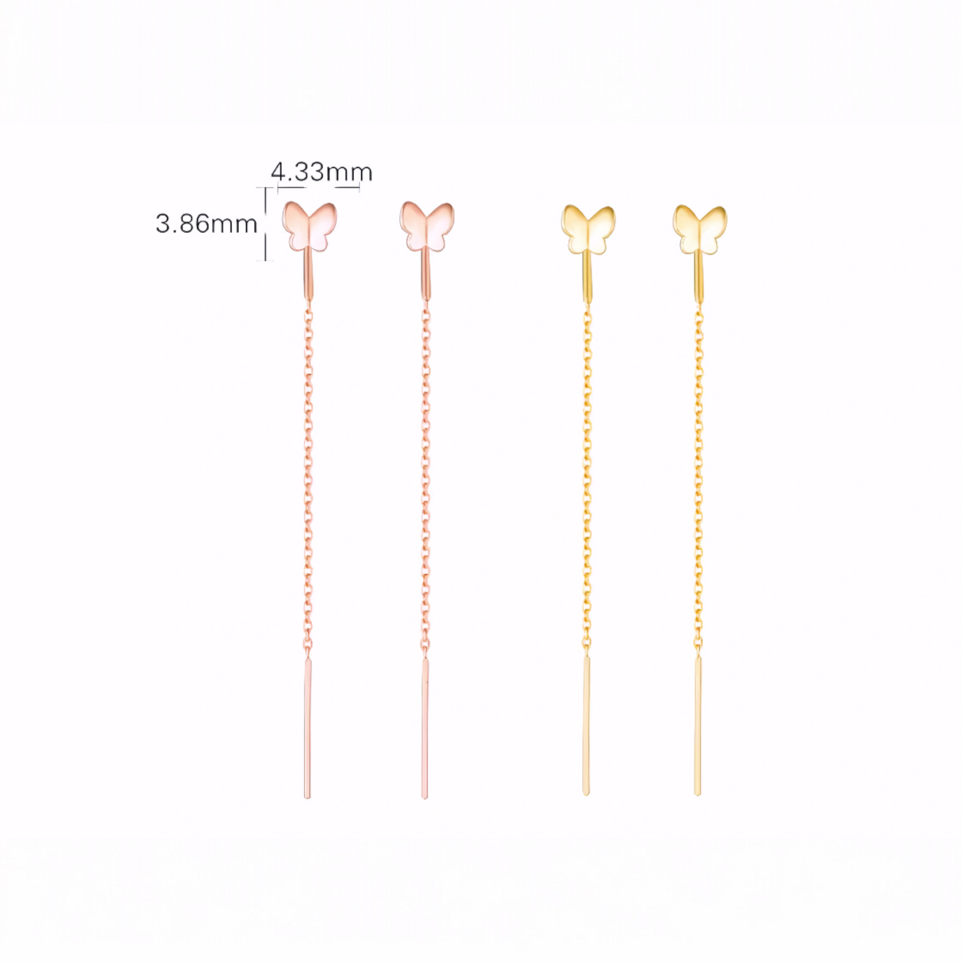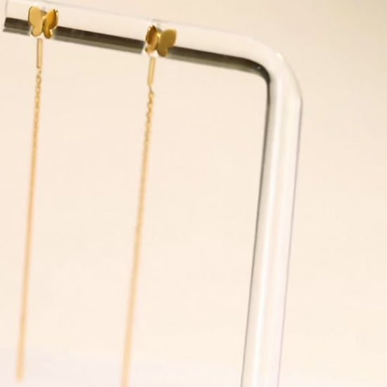 18K Gold Rose Gold Unique and Trendy Threader Butterfly Earrings