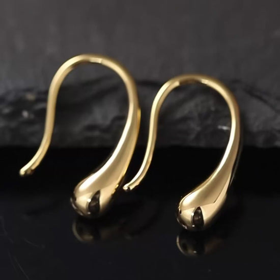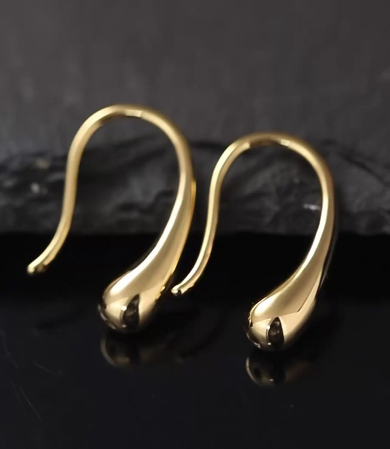 18K Gold Unique and Trendy Prince Rupert's drop Teardrop U-Shaped Hooks Earrings