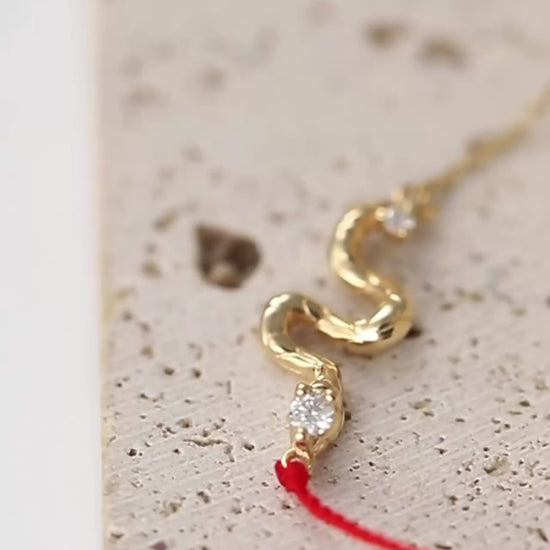 18K Gold Diamond Snake Simple Elegant Red Braided Bracelet
