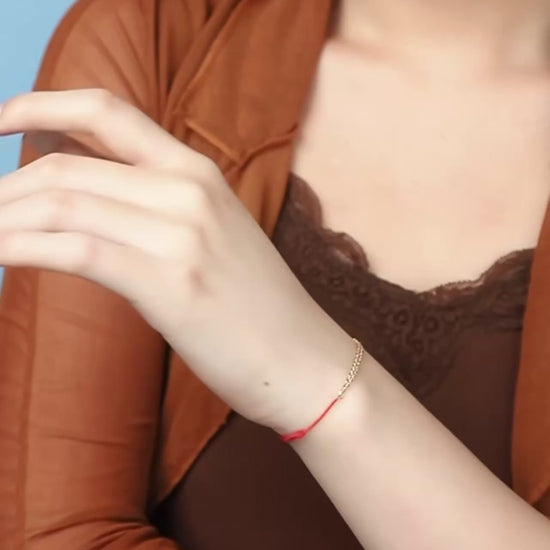 18K Real Gold Sparkling Gold Chain with Red Rope Braided Bracelet