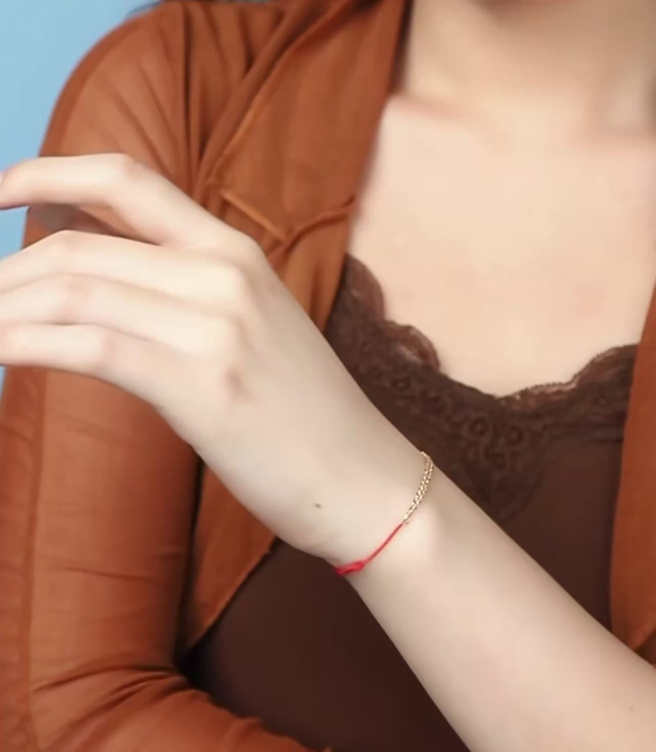 This sophisticated bracelet seamlessly blends luxury with contemporary design, featuring genuine 18K gold chain segments alternating with hand-braided red rope in a striking two-tone composition. The sparkling gold elements catch light beautifully, while the vibrant rope adds texture and visual interest. Perfect for layering or wearing solo, this piece transitions effortlessly from casual to formal occasions. The combination of precious metal and durable rope creates a versatile accessory that balances refinement with modern edge, making it an ideal choice for those seeking distinctive jewelry with lasting appeal.