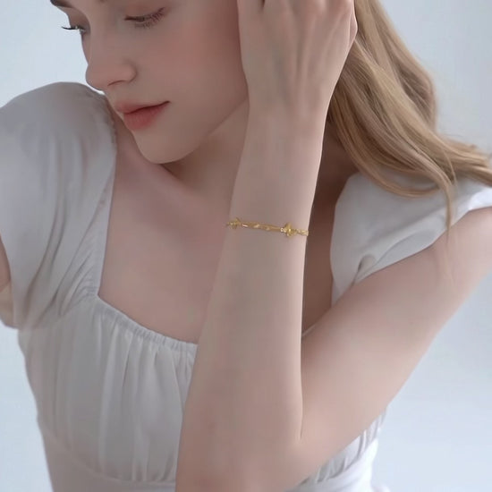 18K Real Gold Double Chain and Link Butterfly Charm Bracelet