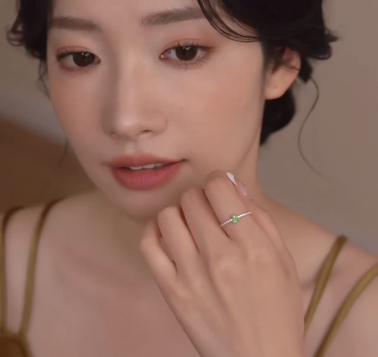 18K Real Gold Green Jade Gourd Stacking Ring Proposal Wedding Bride Gift