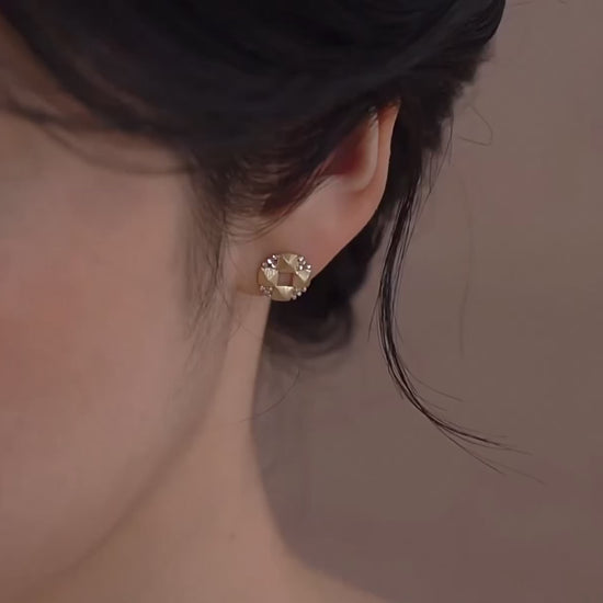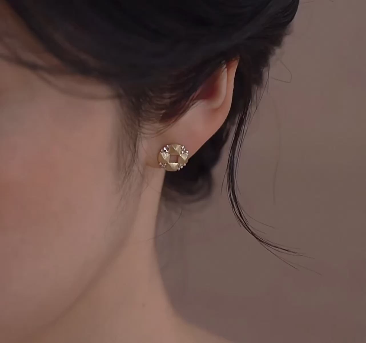 18K Real Gold Retro two-tone Lattice button Stud Earrings
