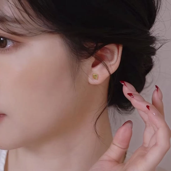 18K Real Gold Square Minimal Minimalist Stud Earrings