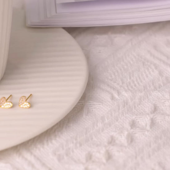 18k Real Gold Zircon Heart Shape Minimal Stud Earrings