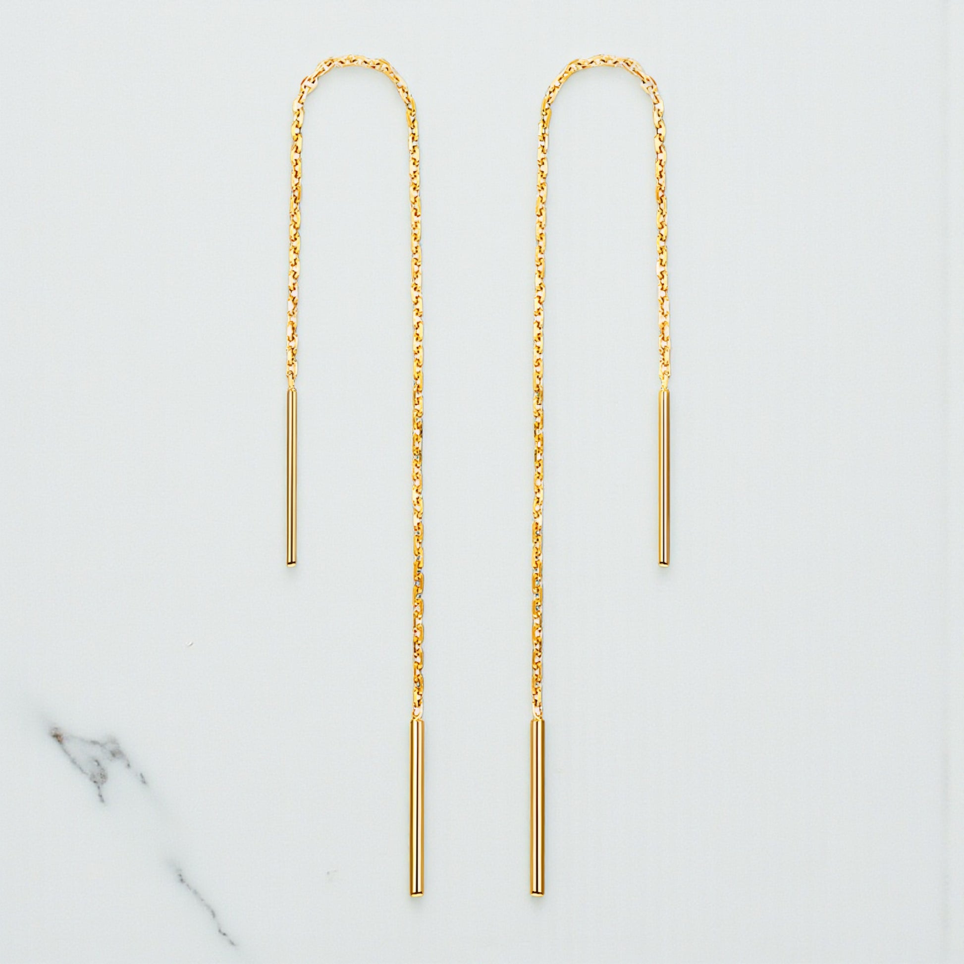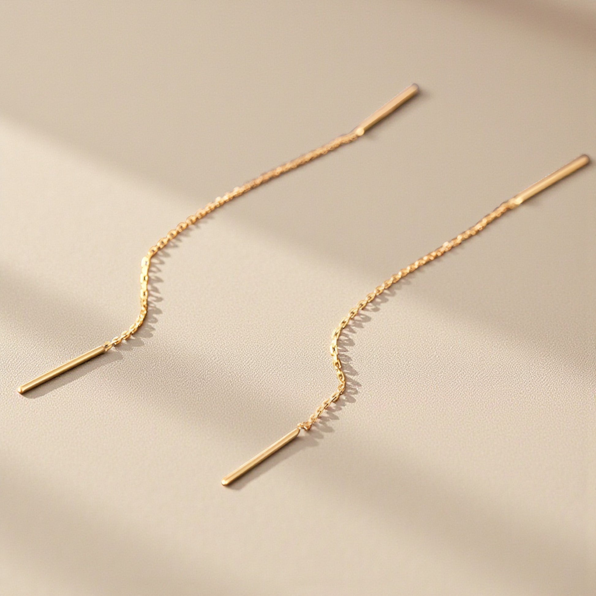18K Rose Gold Yellow Gold Trendy Chain Minimal Simple Threader Earrings