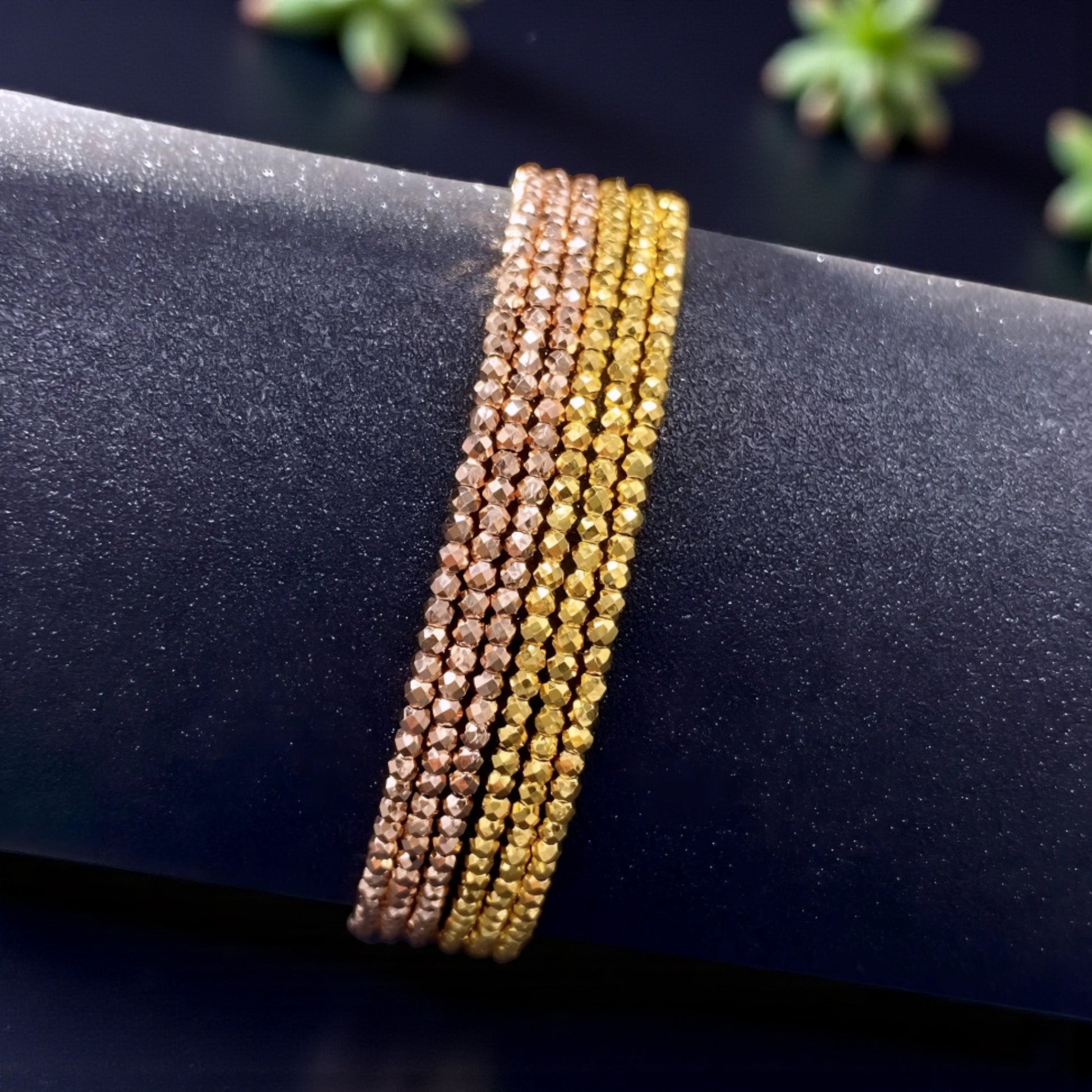 18K Yellow Gold Rose Gold Elastic Disco Beads Strand Soft Bracelet