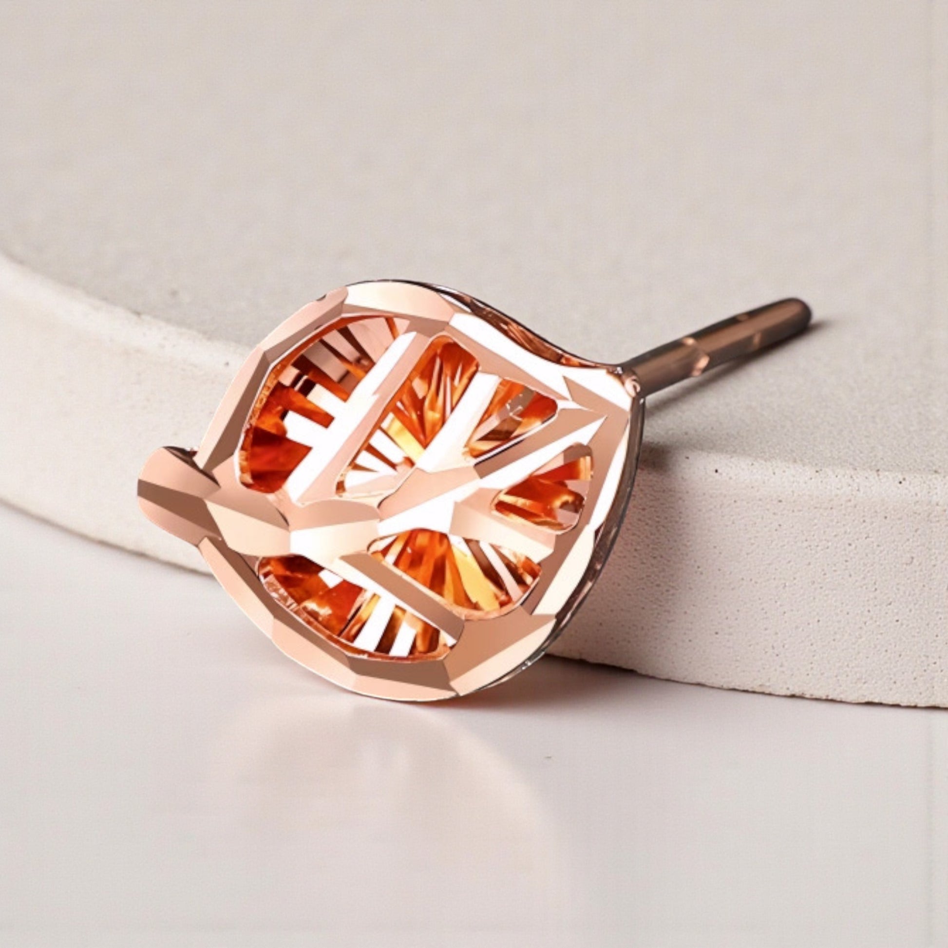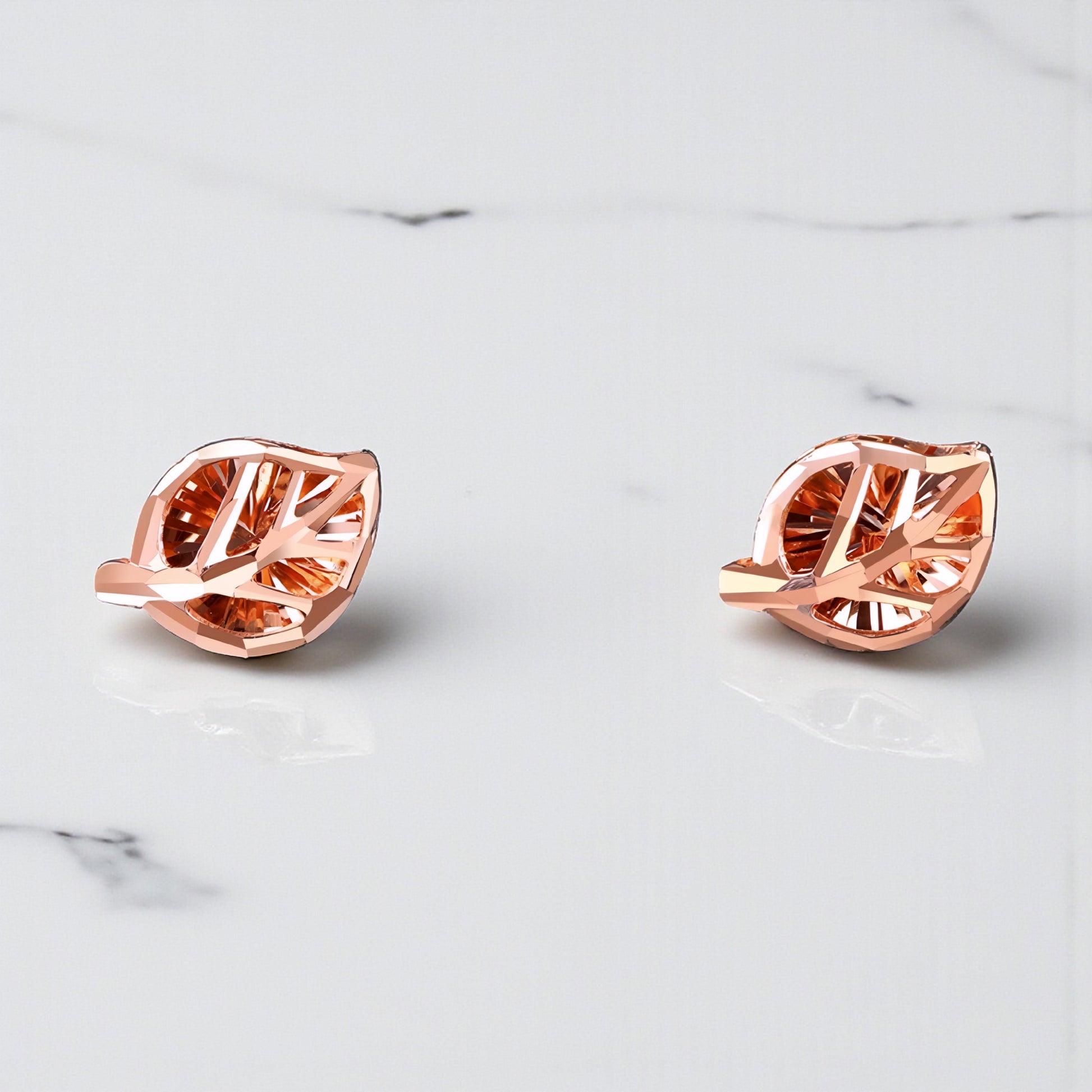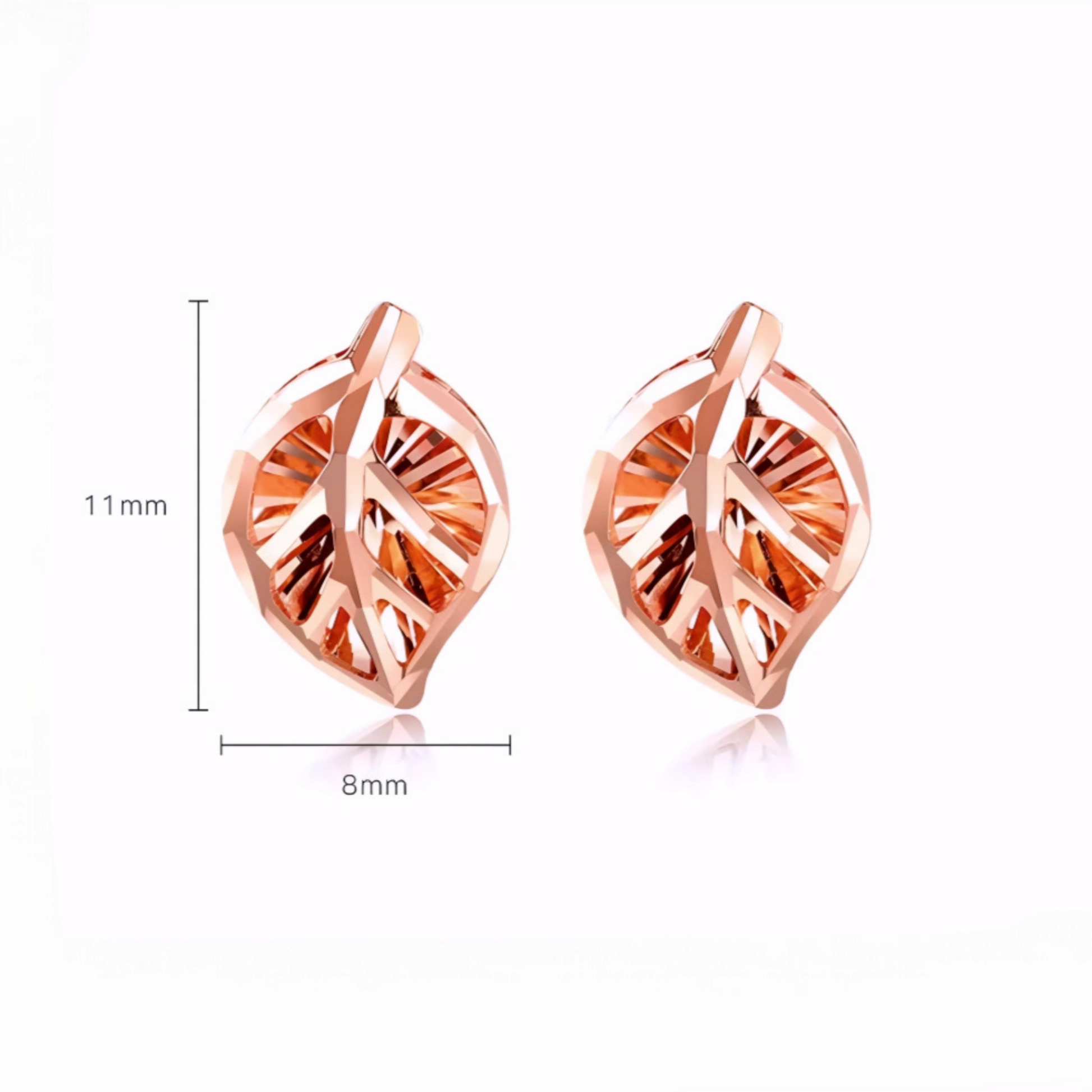18k Rose Gold Simple Shinning Leaf Stud Earrings
