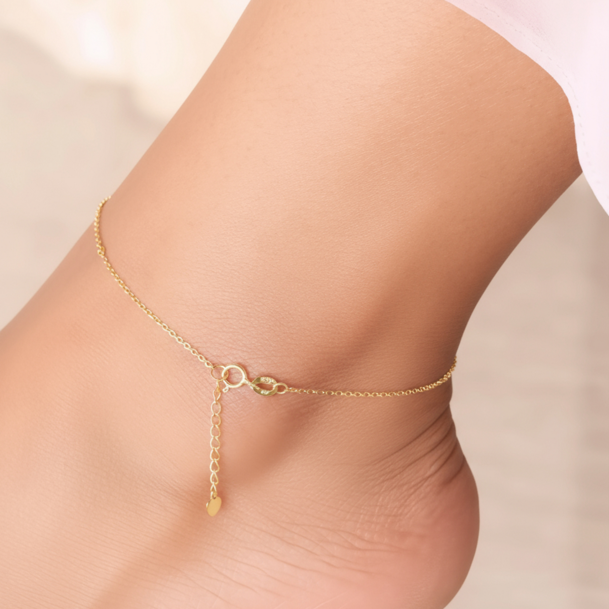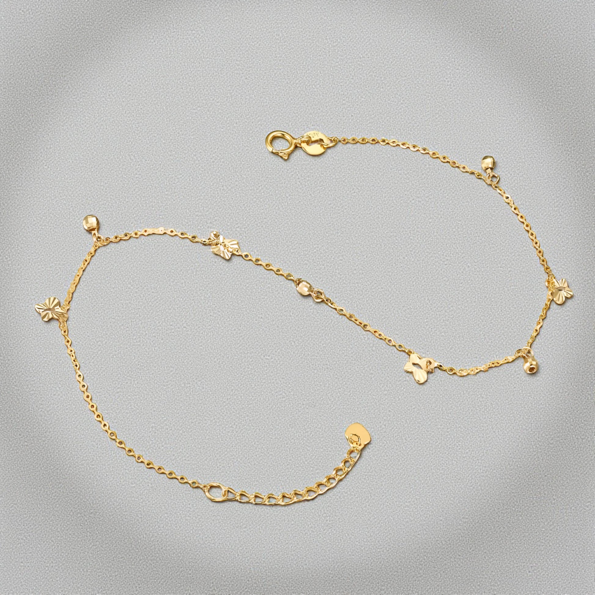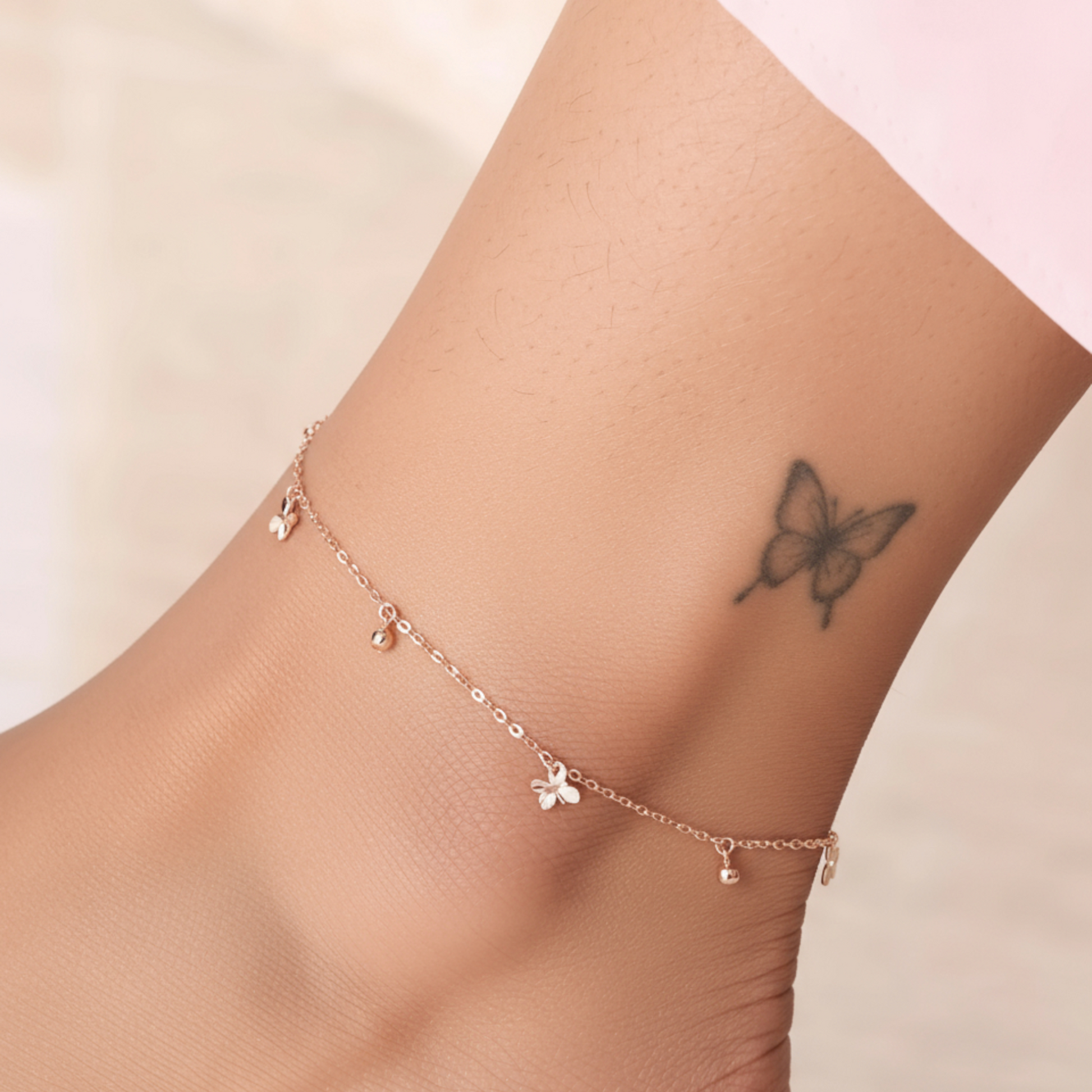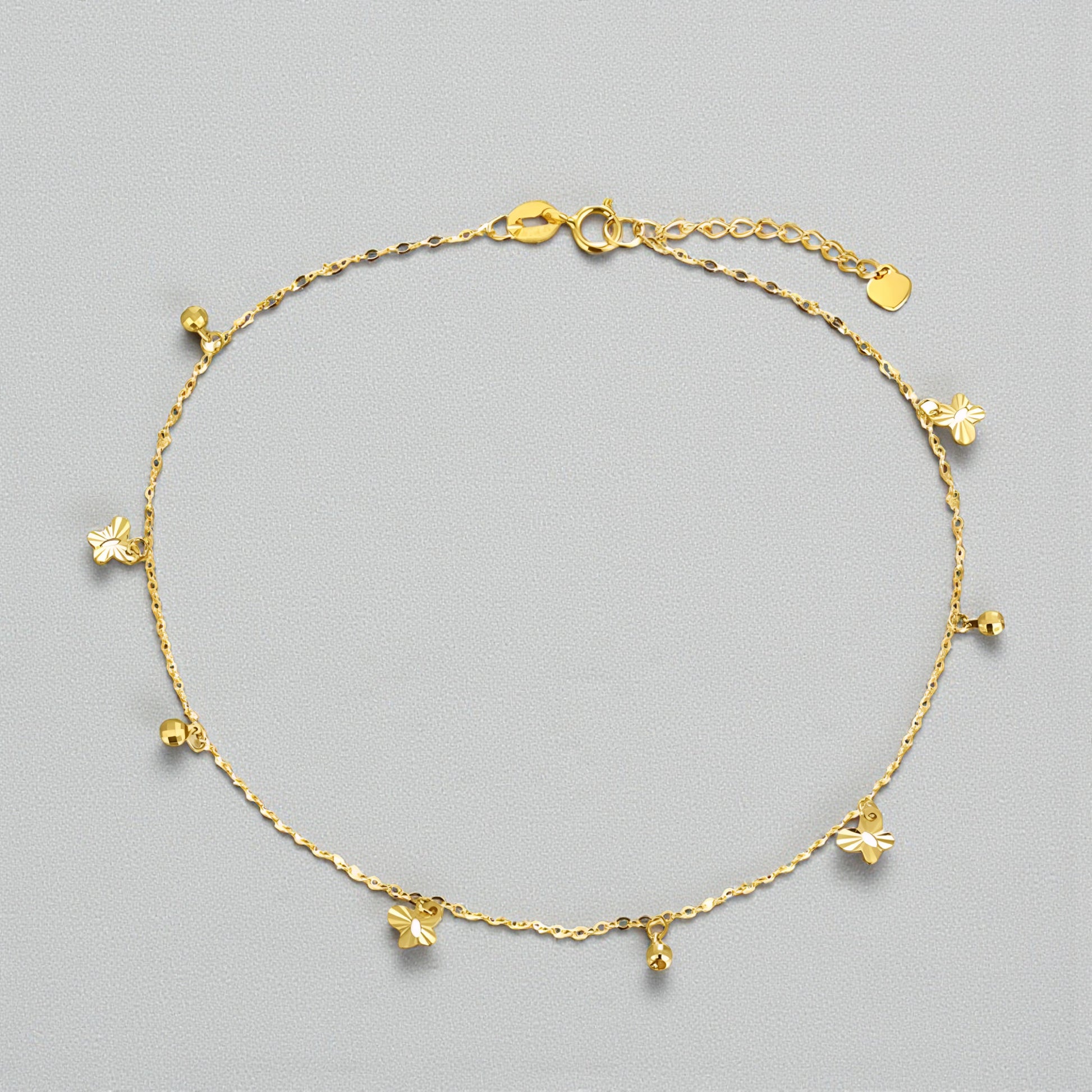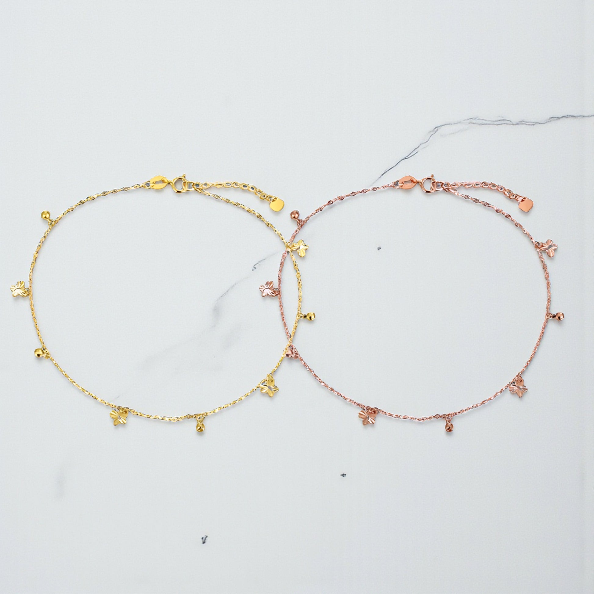 18K Yellow Gold Rose Gold Minimal Butterfly Charm Beads Anklet