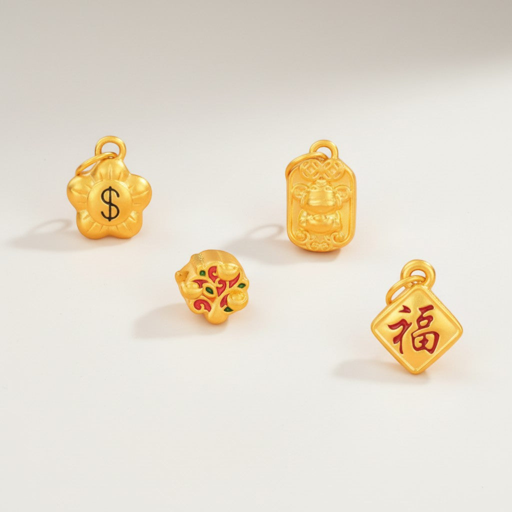 24K Hard Gold Chinese Blessing Enamel D.I.Y Charm Pendant
