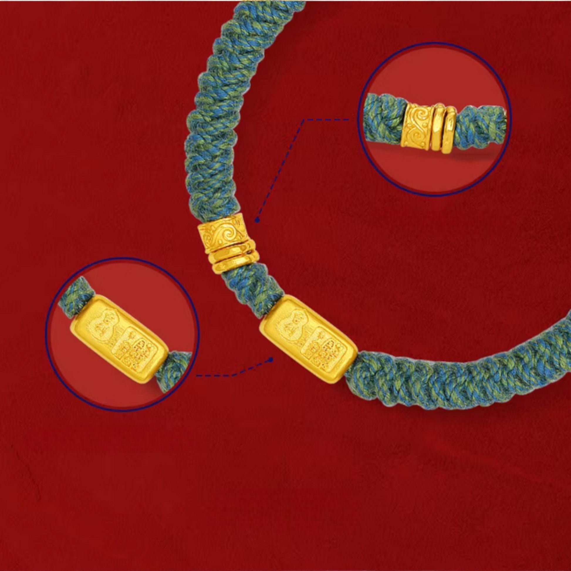 24K Gold Auspicious Charms Blessing and Wealth Woven Bracelet