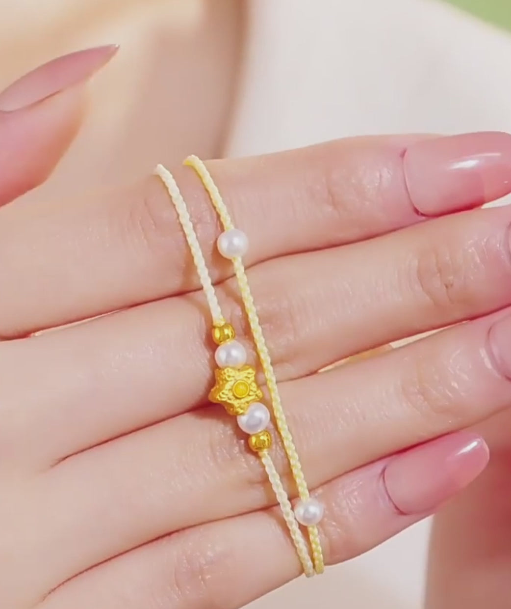 Elevate your jewelry collection with this exquisite 24K 5G 999 hard gold charm bracelet, featuring a stunning star, butterfly, or flower design. Each piece showcases lustrous freshwater pearls set against premium gold craftsmanship, creating a sophisticated accessory that transitions seamlessly from day to evening wear. The braided bracelet design offers both durability and refined elegance, while the three distinct charm styles allow you to express your personal aesthetic. Perfect for those who appreciate fine jewelry with timeless appeal and exceptional quality.