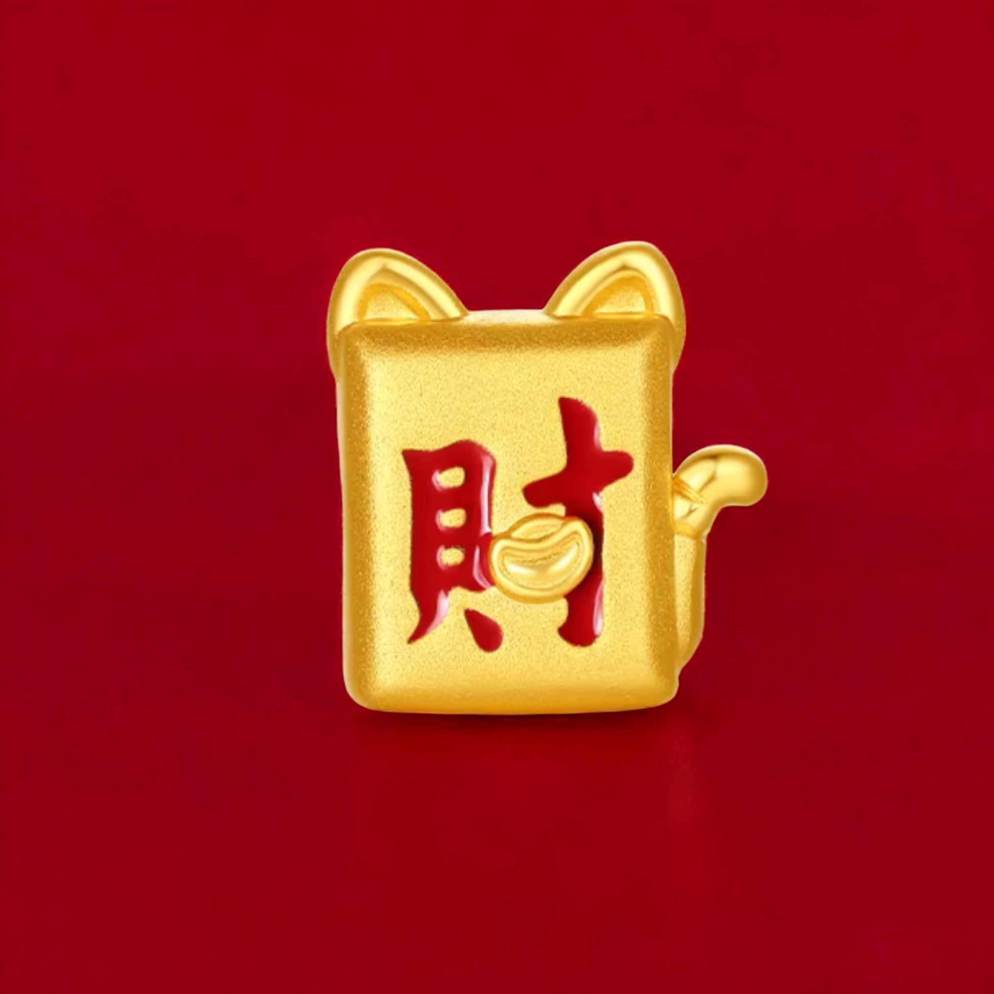 24K 5G 999 Hard Gold Fortune Cat Charm Rope Braided Bracelet