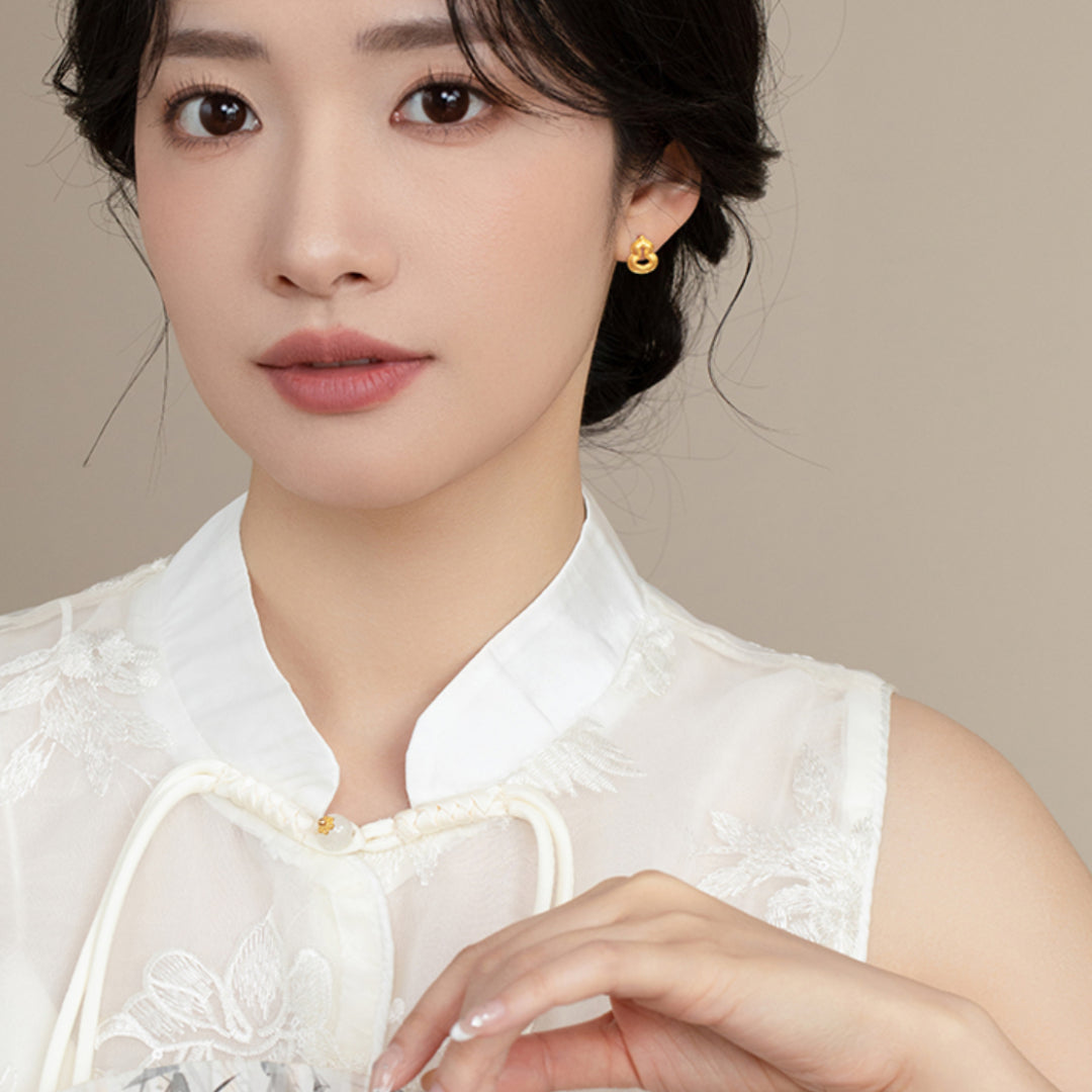 24K 5G Gold Sparkling Lucky Gourd Stud Earrings