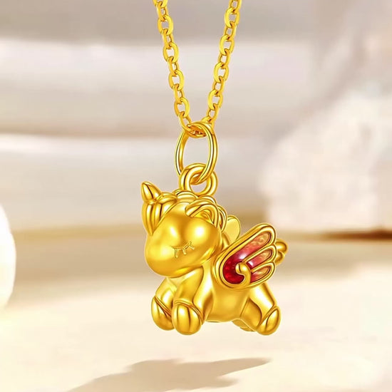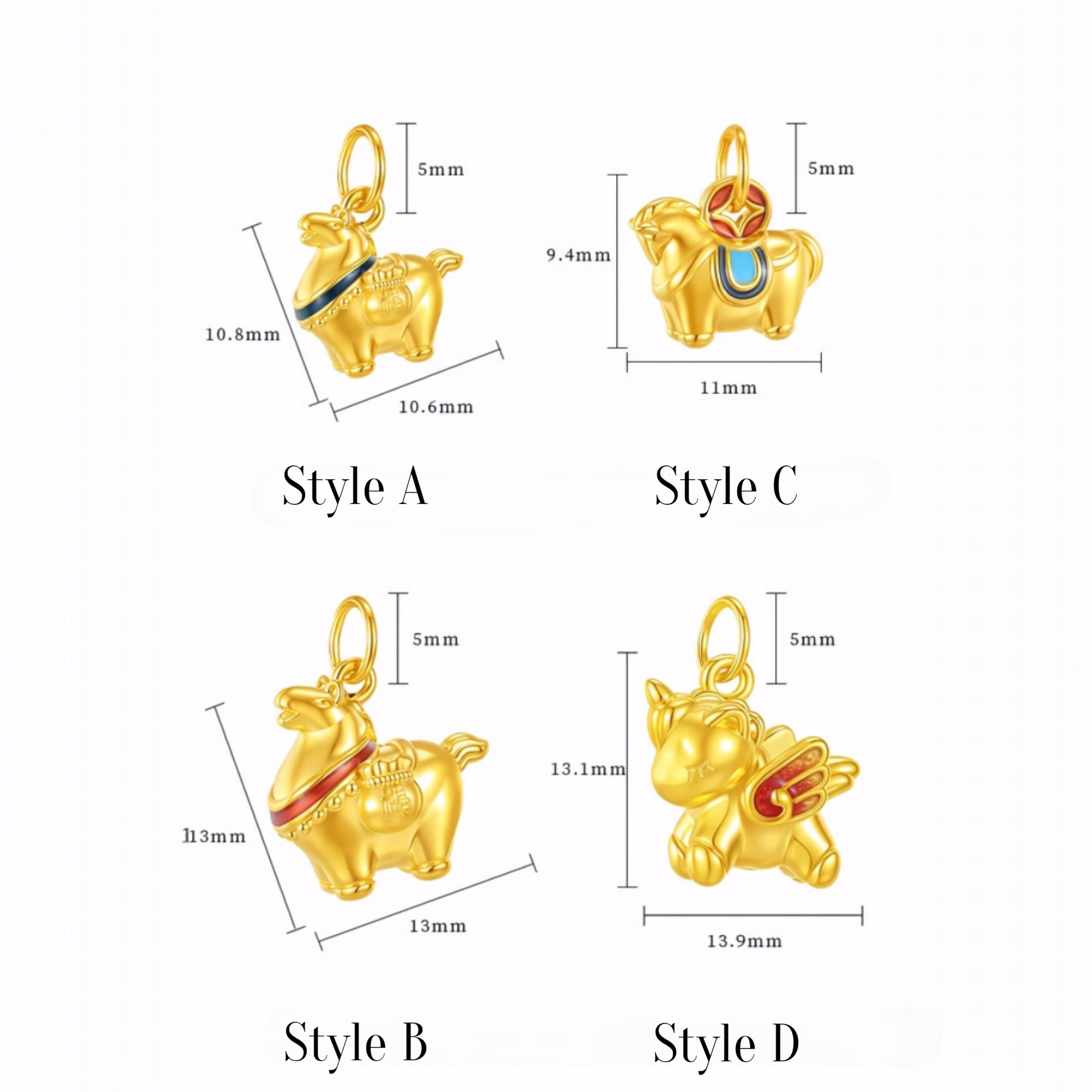 Celebrate the Year of the Horse with this exquisite 24K 999 pure gold charm pendant, expertly crafted with vibrant enamel detailing. This zodiac-inspired piece features a graceful pony or unicorn design, symbolizing strength, freedom, and elegance. Choose from four distinctive styles to match your personal aesthetic. Perfect for collectors of fine jewelry, zodiac enthusiasts, or as a meaningful gift, this pendant combines precious metal craftsmanship with cultural significance. The pure gold composition ensures lasting quality and timeless appeal for your charm bracelet or necklace collection.