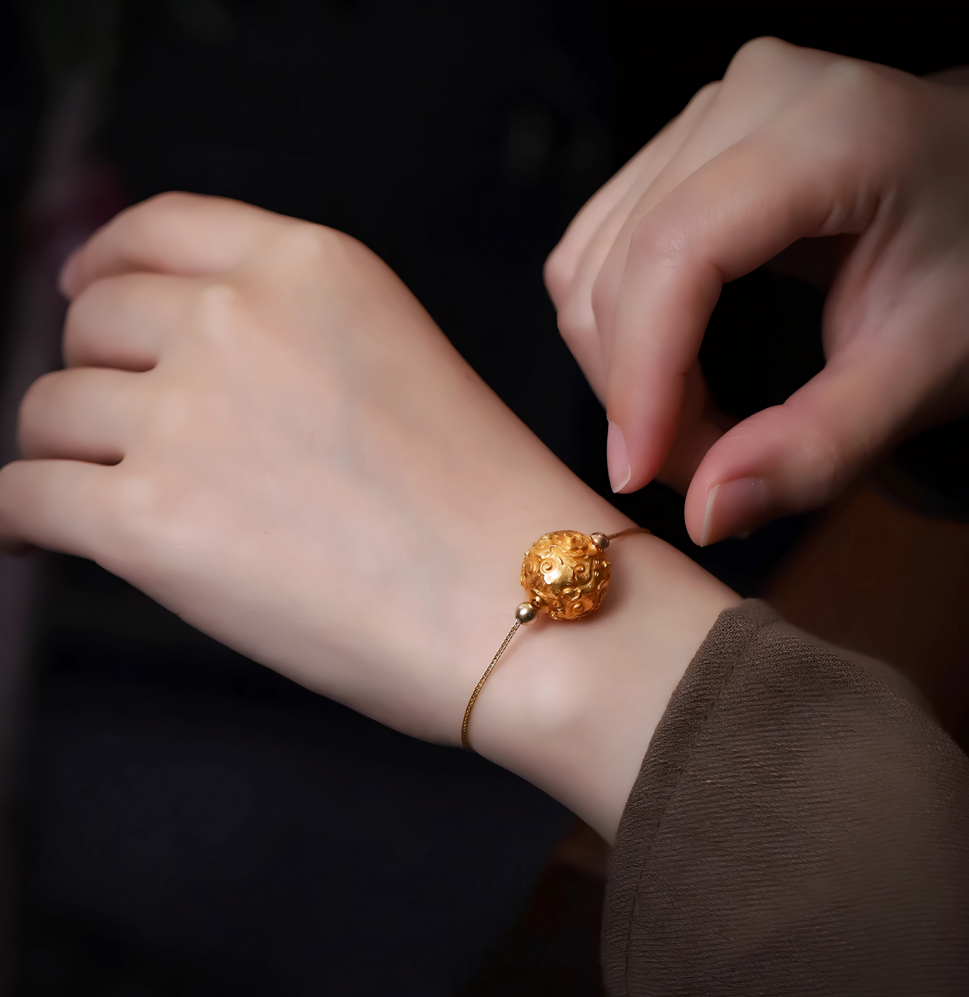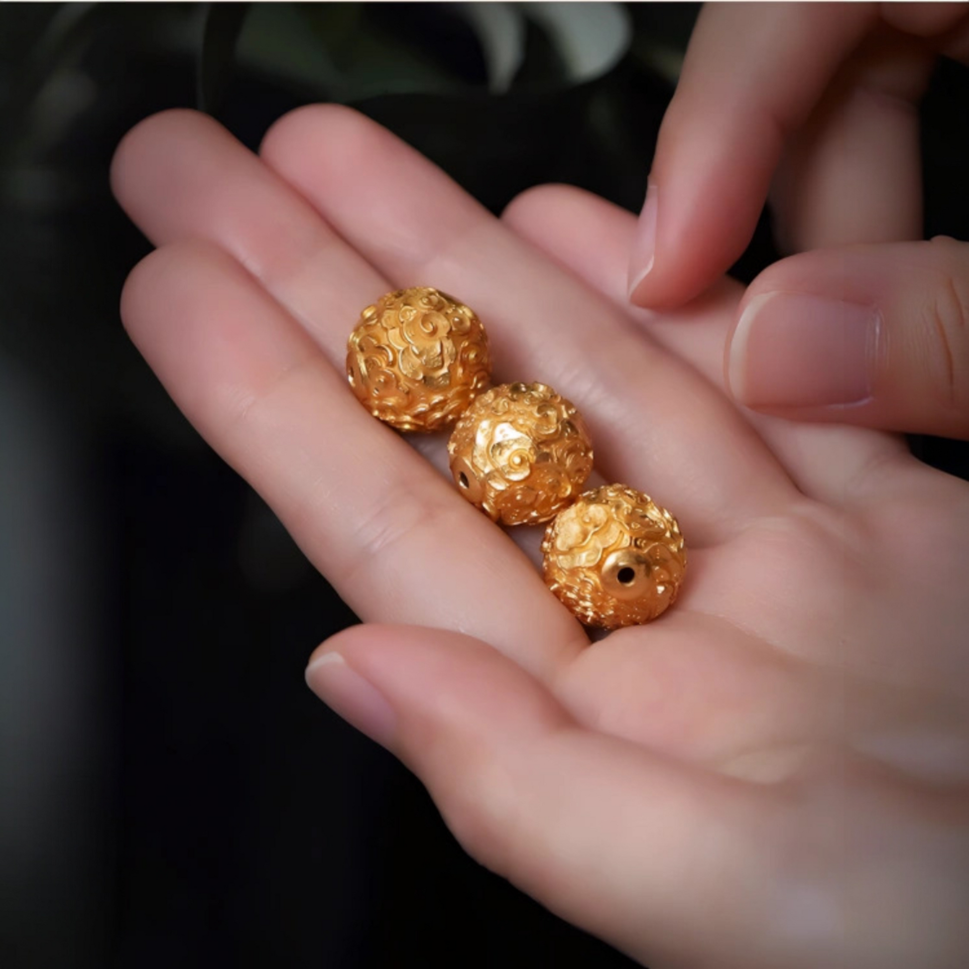 This exquisite 24K 999 gold pendant showcases authentic craftsmanship with its intricately engraved cloud pattern, a symbol of prosperity in traditional Chinese culture. The round bead design functions as both a standalone charm and versatile spacer, seamlessly integrating into existing jewelry collections. Hand-finished with meticulous detail, each piece reflects the quality standards of ancient artisanal techniques. The substantial gold purity ensures lasting brilliance and durability, making this pendant an investment-worthy addition for collectors and those seeking meaningful, culturally significant jewelry with timeless appeal.