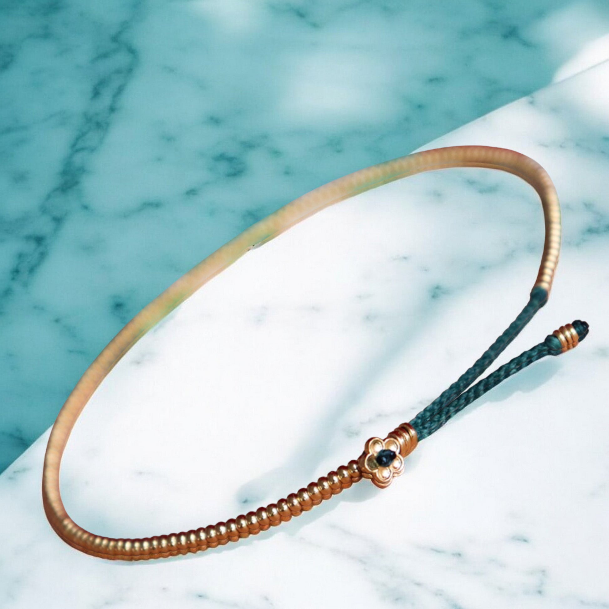 Material: 24K Solid gold. Braided rope non-allergenic and non-fading