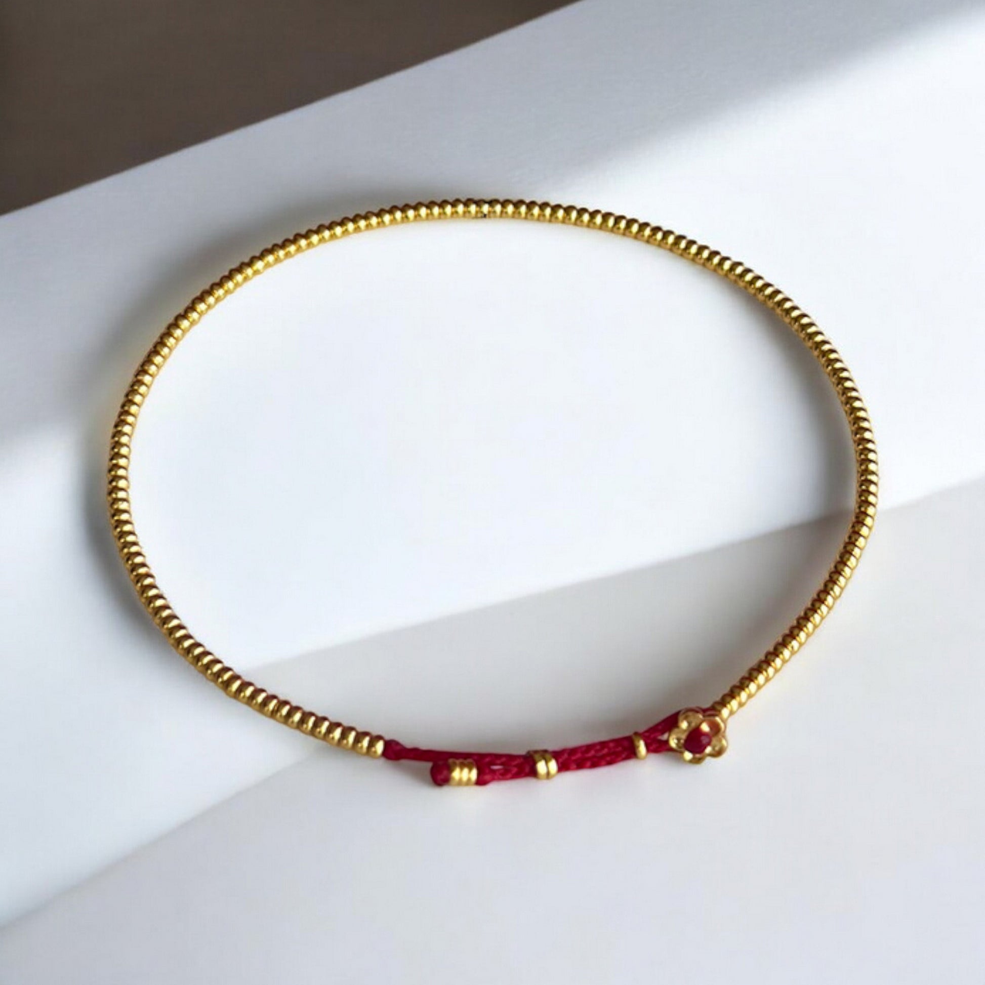 24k 999 Gold Beads Flower Charm Braided Rope Bracelet