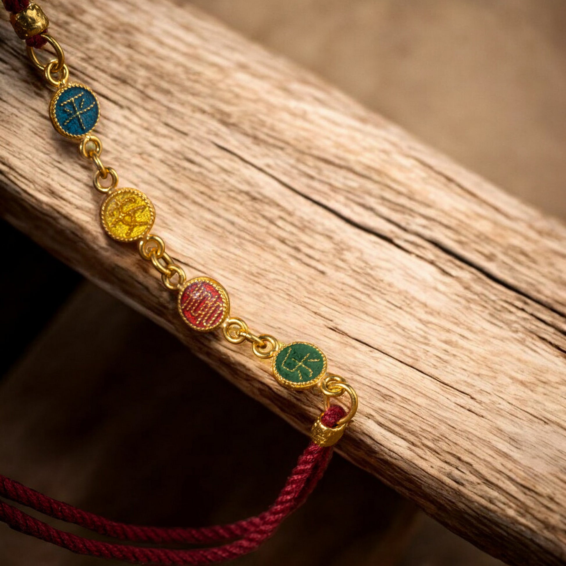 24k 999 Gold Enamel Chinese Word Peace and Joy Charm Rope String Bracelet