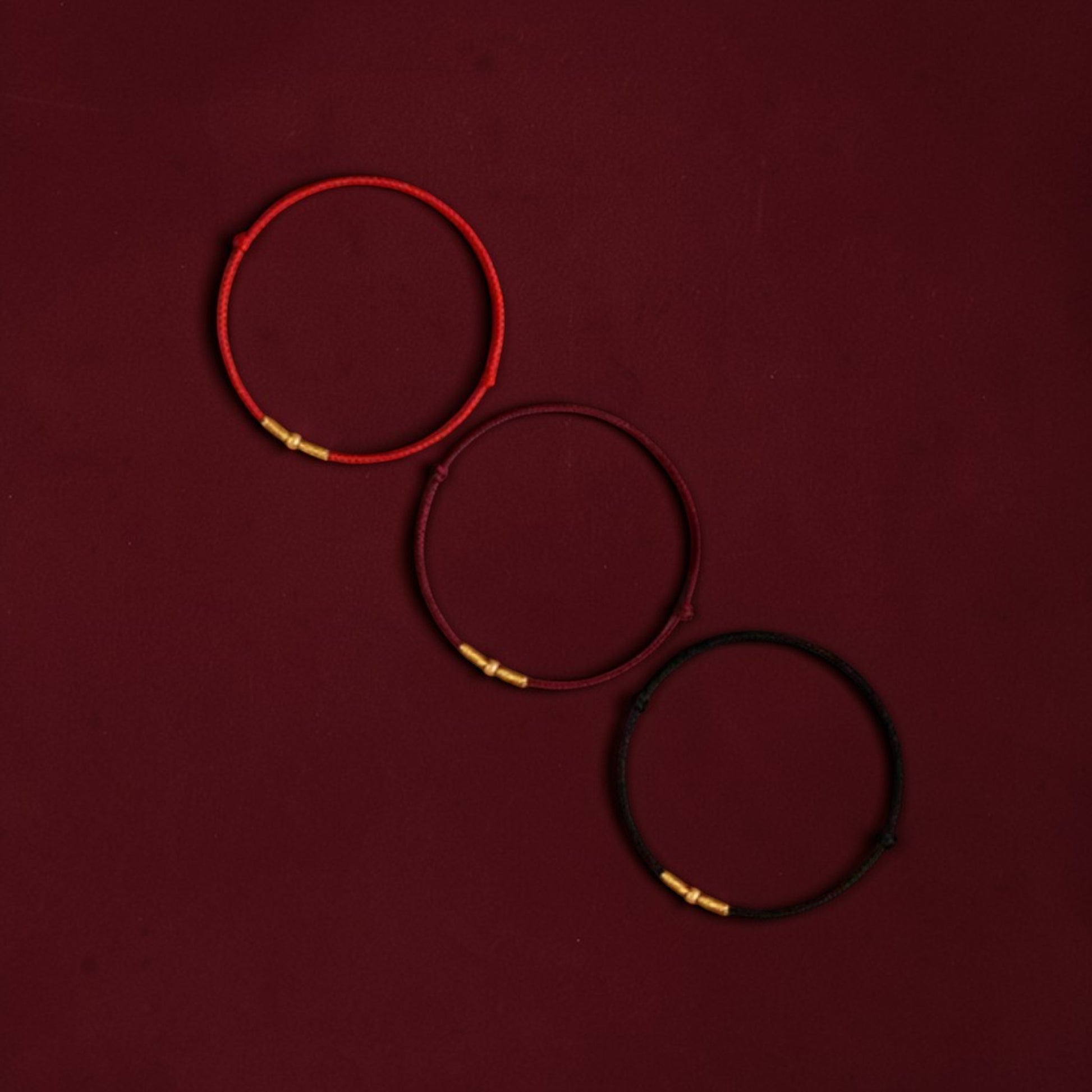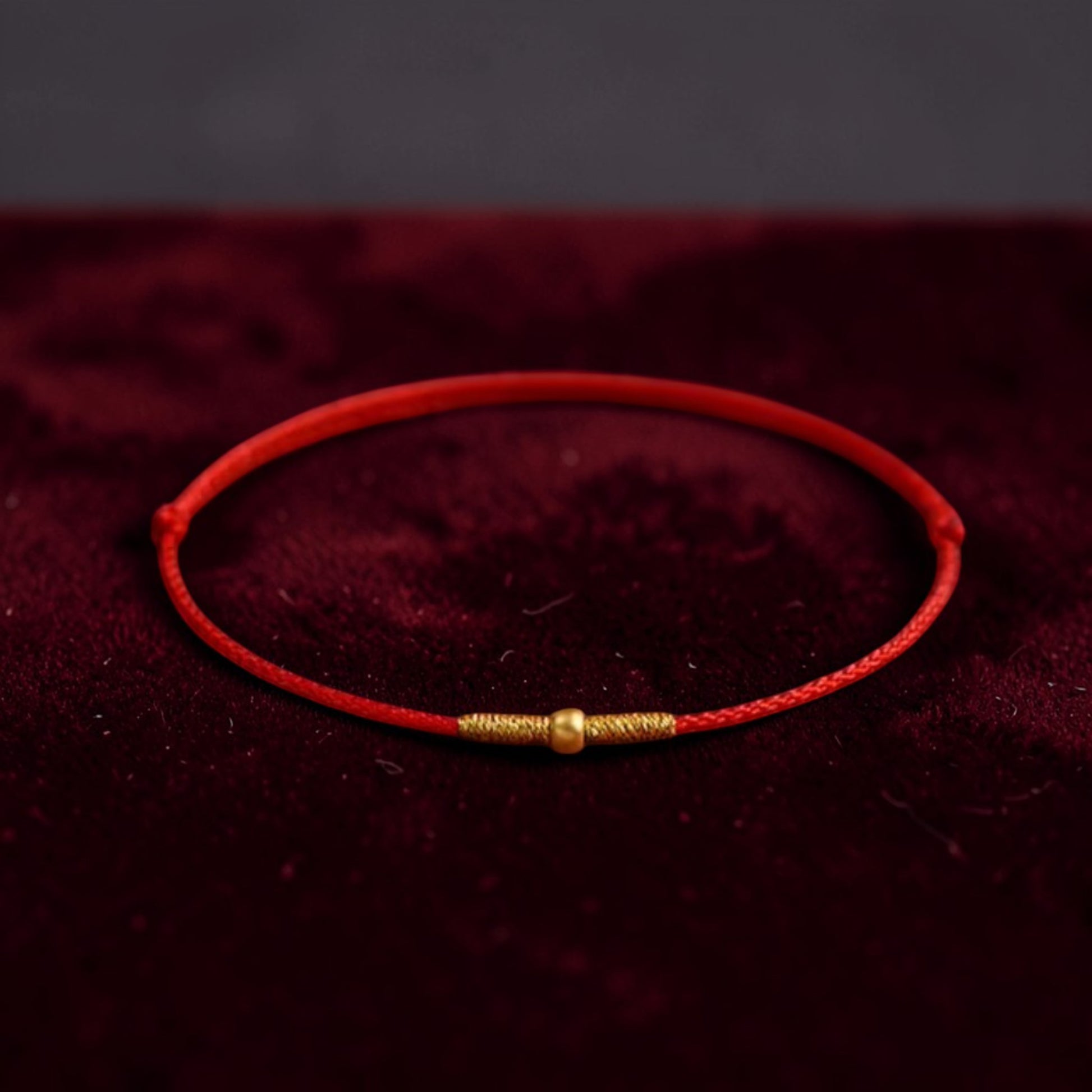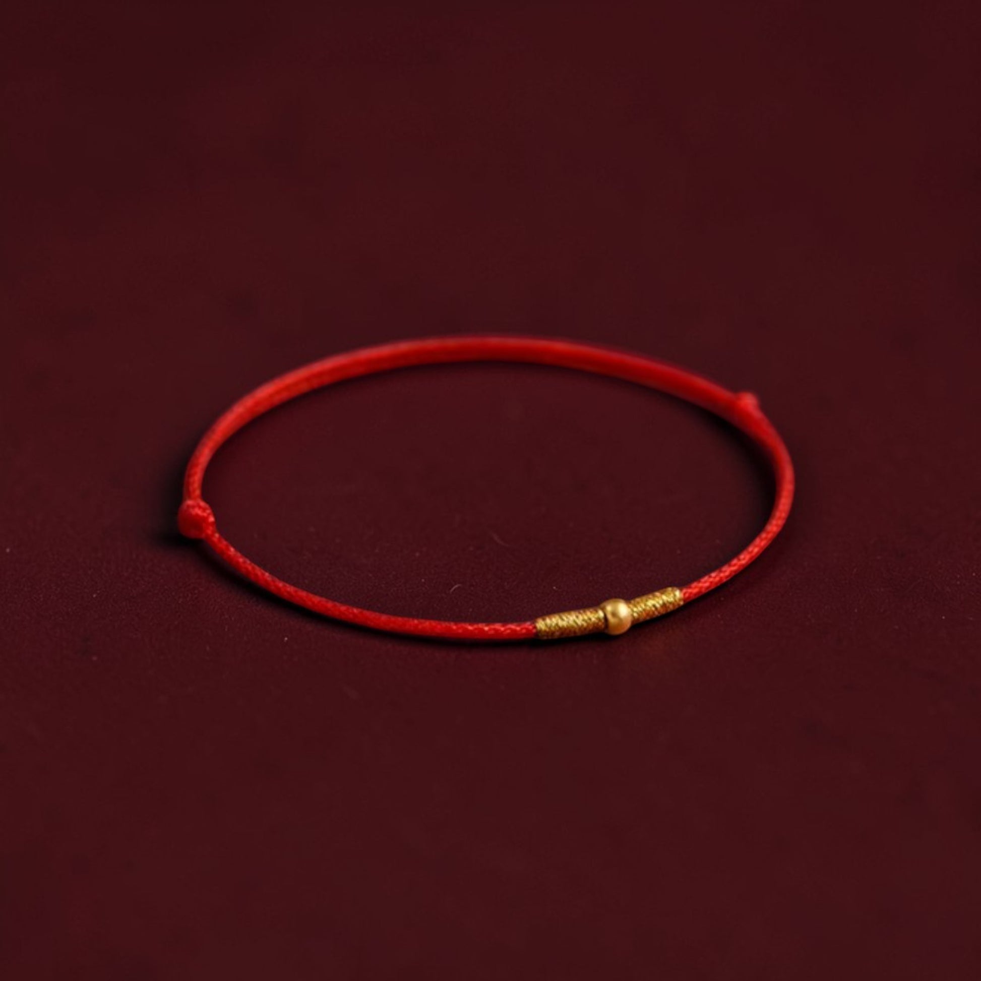 24k 999 Gold Bead Minimal Extremely Fine Red Rope Bracelet and Anklet