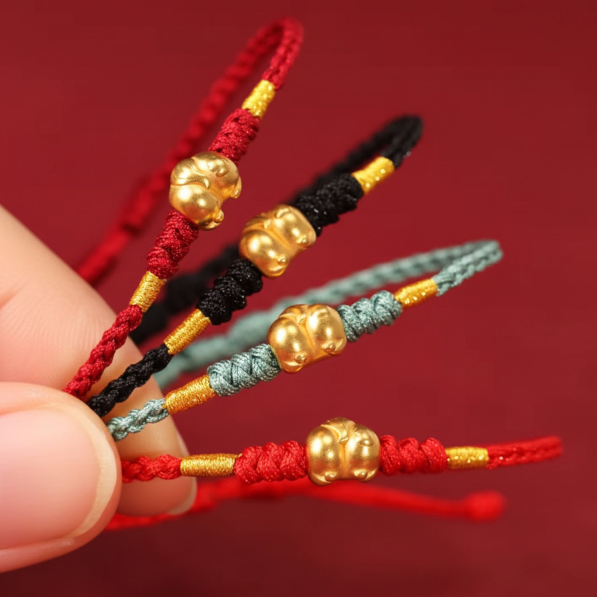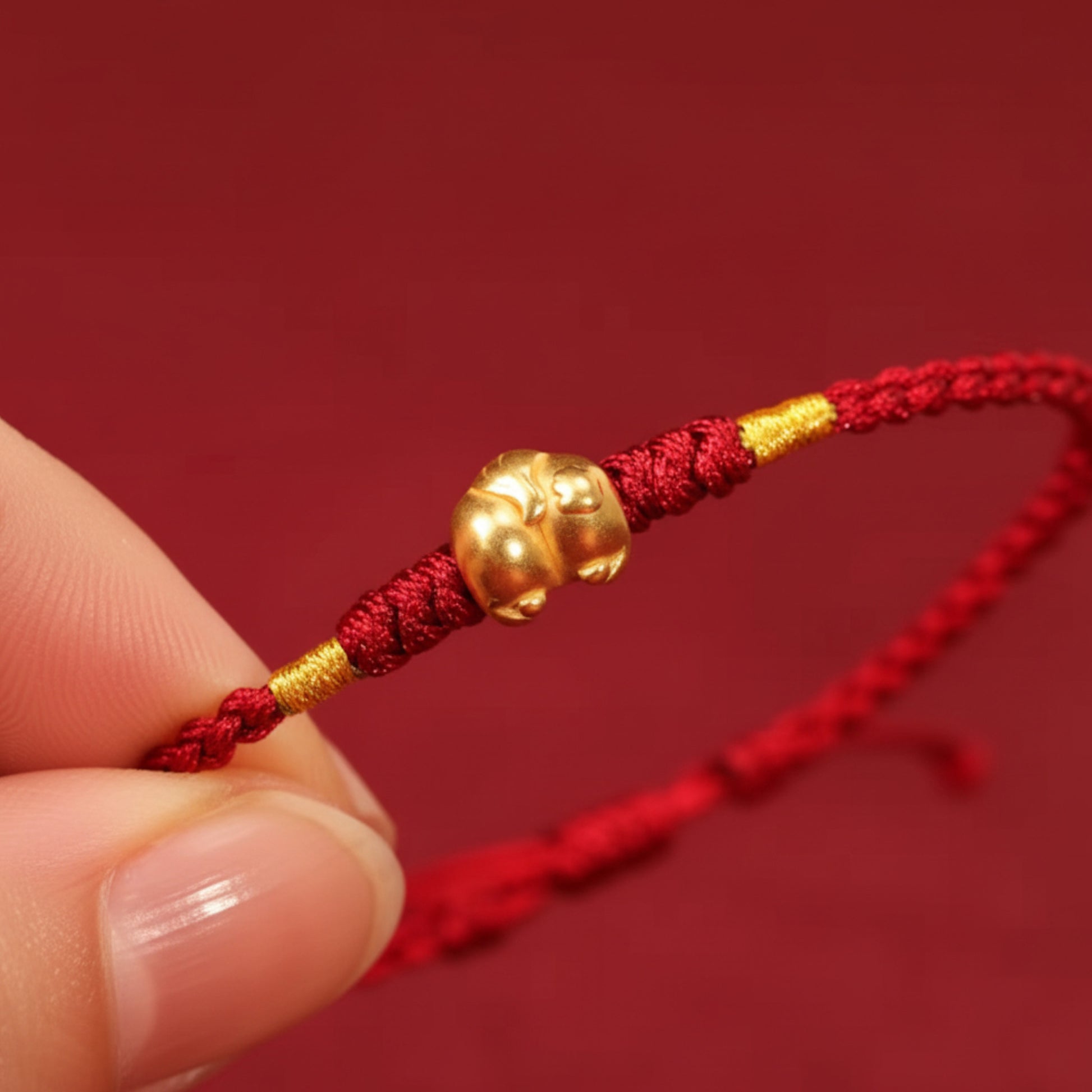 24k 999 Gold Chinese Zodiac Year of Horse Butt Fun Woven Red Rope Braided Bracelet