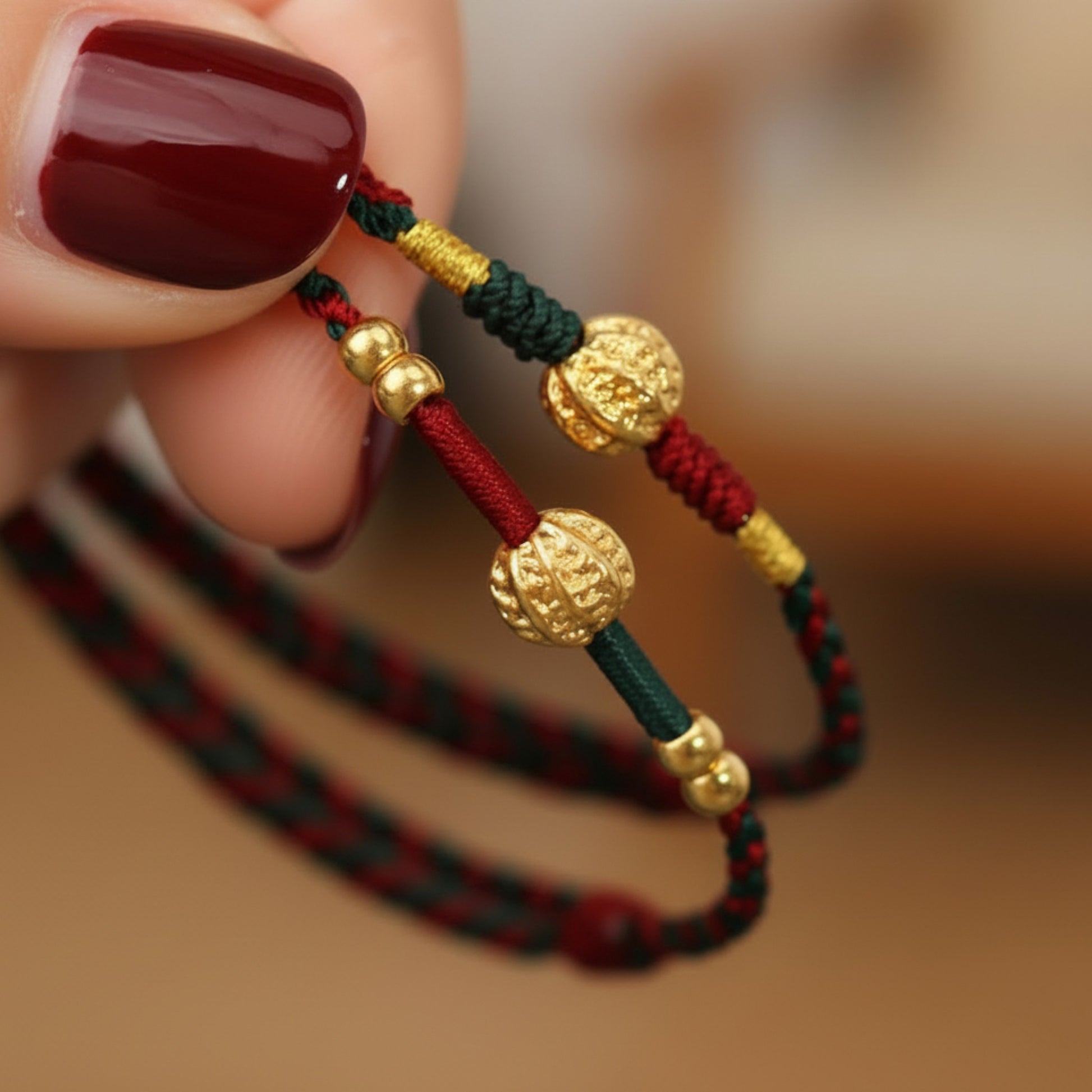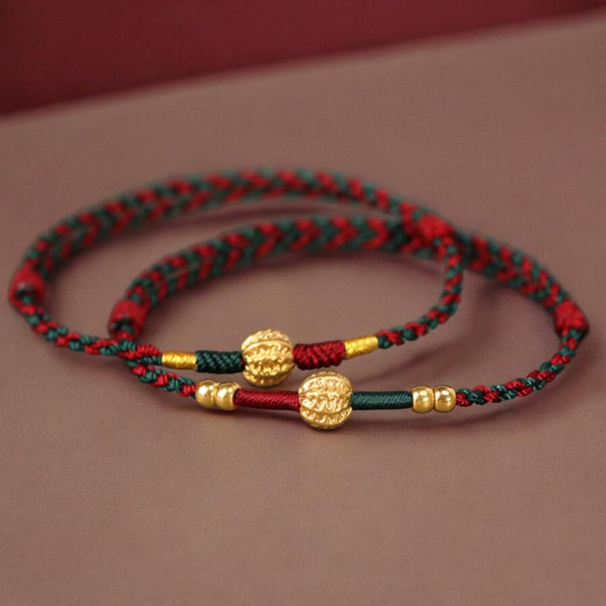 24k 999 Gold Walnut Charm Woven Red Rope Braided Bracelet