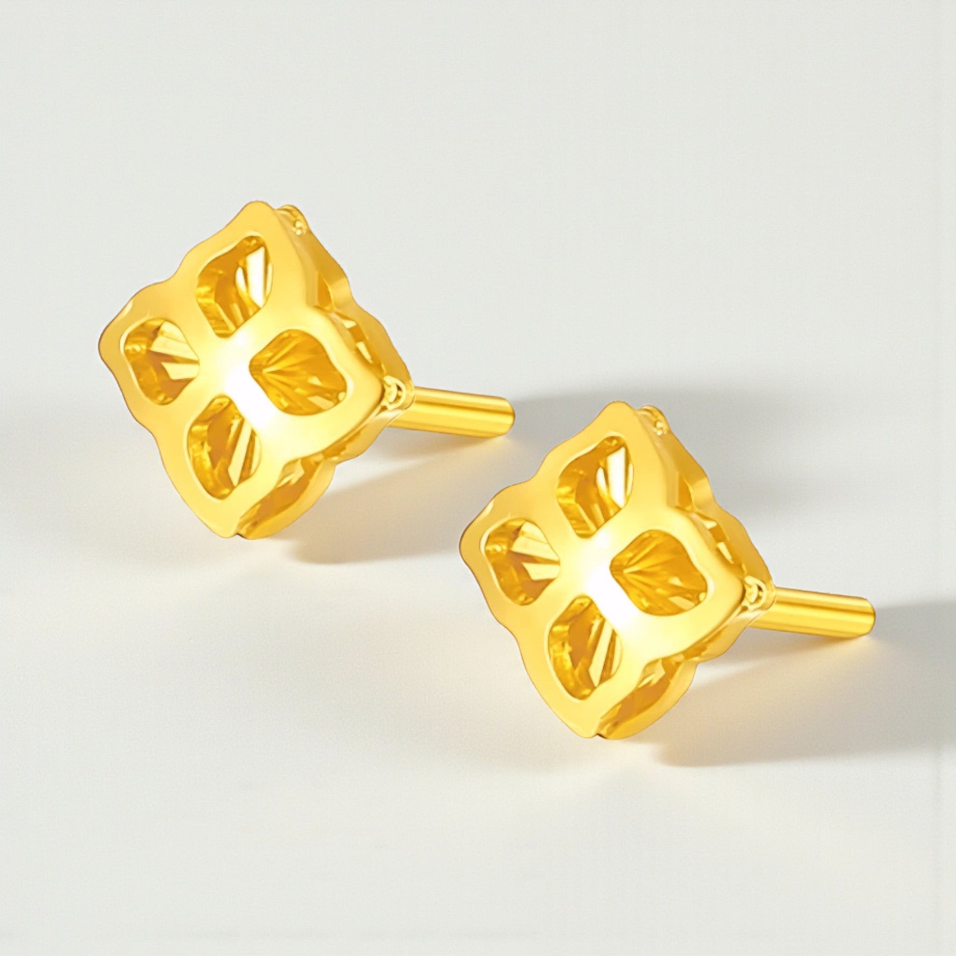 Crafted from 24K 999 gold, these minimalist clover studs embody timeless elegance with symbolic meaning. The delicate four-leaf design catches light beautifully while maintaining an understated aesthetic perfect for everyday wear or layering. Each stud features secure backing for comfortable all-day comfort. A refined choice for those who appreciate fine jewelry that whispers rather than shouts.