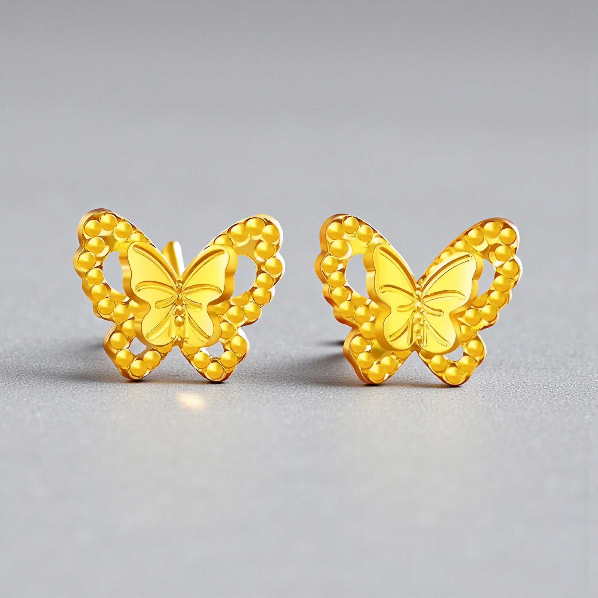 24K 999 Gold Double Layer Butterfly Stud Earrings