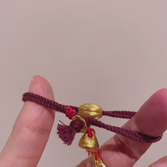 24k 999 Gold Gourd Shaped Charm Red String Bracelet